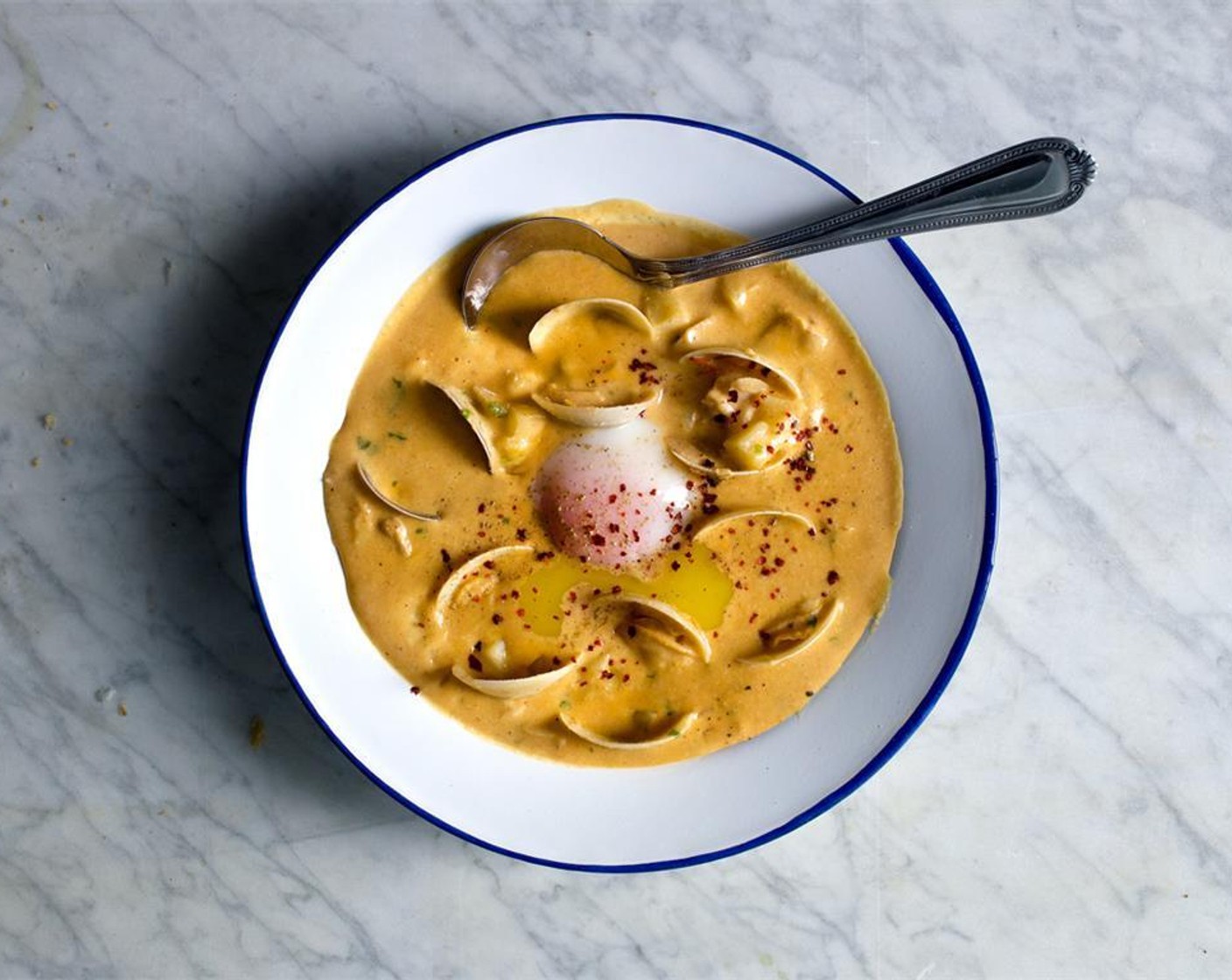 Zurück in den Topf geben, dann die Kartoffeln-Sahne-Mischung und die 25 Muscheln hinzufügen. 5 Minuten bei schwacher Hitze unter gelegentlichem Rühren köcheln lassen, bis sich die Muscheln geöffnet haben.