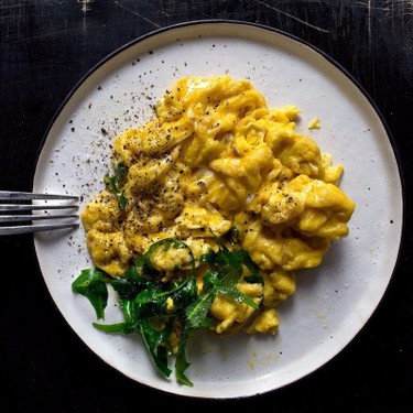 Diese Methode sorgt für eine cremige und puddingartige Konsistenz, die köstlich ist und überhaupt keine Zeit in Anspruch nimmt. Vorbei sind die Zeiten, in denen Rührei langsam zubereitet wurde.
