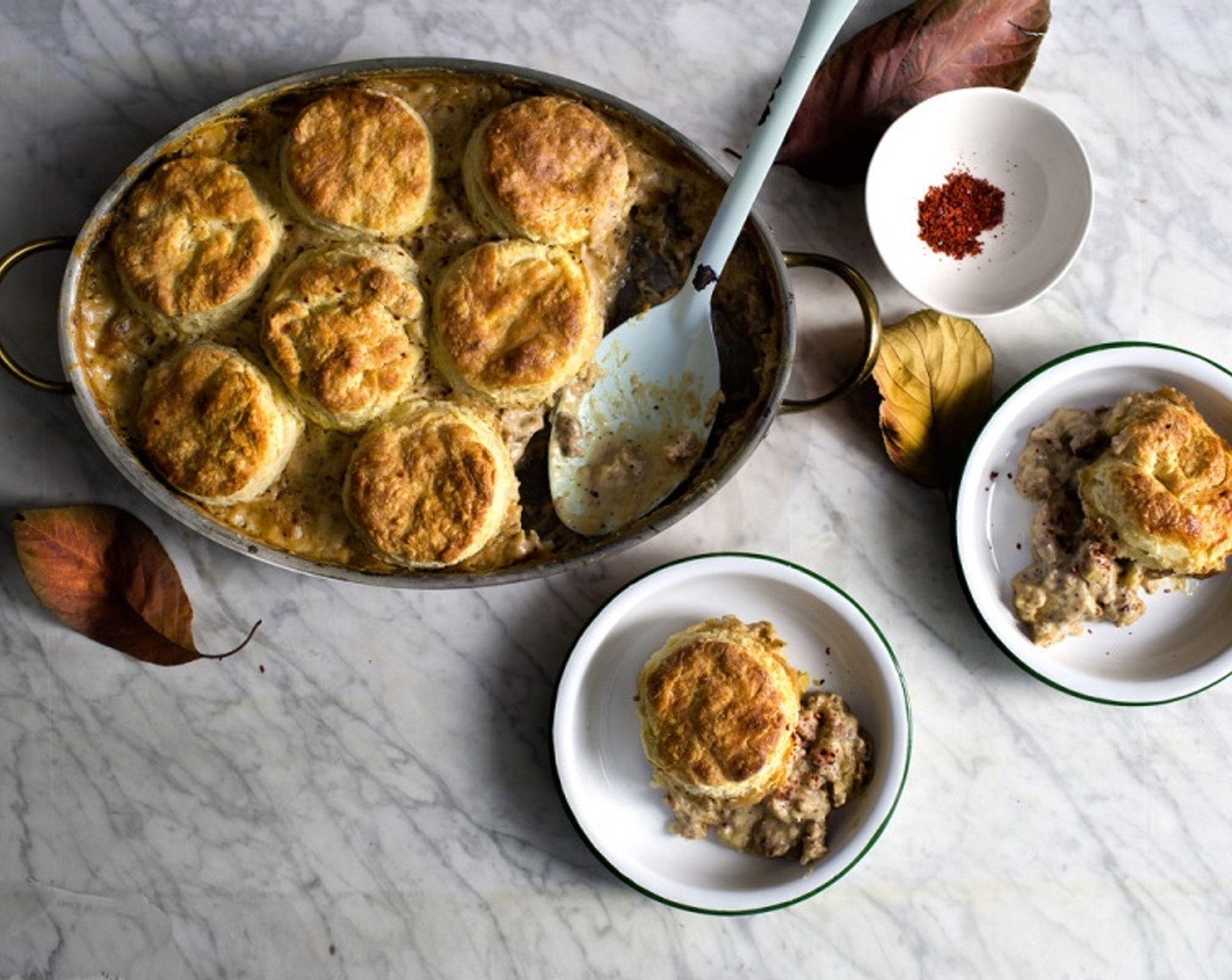 Den Auflauf sofort mit Chiliflocken (wenig) servieren.