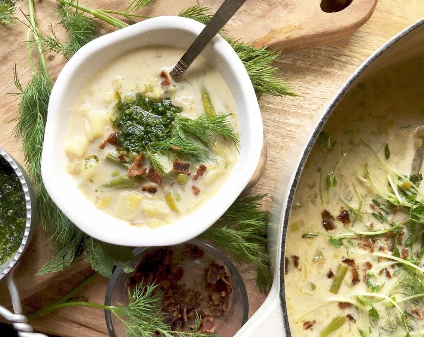 Was wir an diesem Eintopf so lieben, ist Folgendes. Man kann sie das ganze Jahr über genießen. Wenn Sie in einer Gegend mit verschiedenen Jahreszeiten leben, ist das noch besser. Tauschen Sie einfach einige der Zutaten aus und Sie haben eine köstliche Schüssel mit saisonalen Köstlichkeiten. Butternuss und Eichelkürbis passen zum Herbst, Spargel und Erbsen zum Frühling, Zucchini und Mais zum Sommer. Wenn Sie ein Fan der einfachen Kartoffelsuppe sind, brauchen Sie natürlich keine zusätzlichen Zutaten. Sie ist wirklich köstlich, so wie sie ist.