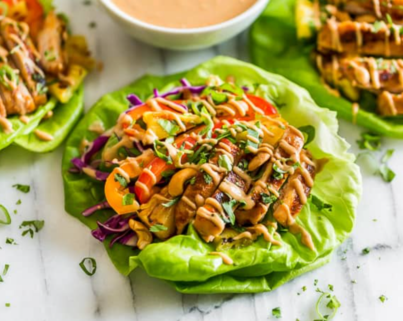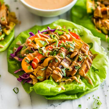Salat-Wraps gefüllt mit buntem Gemüse und würzigem Poulet. Sie stecken voller Gemüse und der rote Curry-Geschmack des Poulets macht regelrecht süchtig. Sie sind low-carb, gluten- und milchfrei.