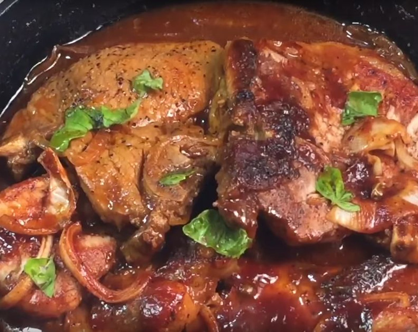 Super easy BBQ mit Zwiebeln und Basilikum. Schnell und einfach zuzubereiten und mit Lieblingsbeilagen serviert. Herrlich!