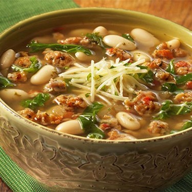 Diese herzhafte Suppe kombiniert köstliche Salsiccia, aromatische Zwiebeln, erlesenen Wessßwein, zarte Bohnen und nahrhaften Grünkohl in einer herzhaften Brühe mit toskanischem Flair.