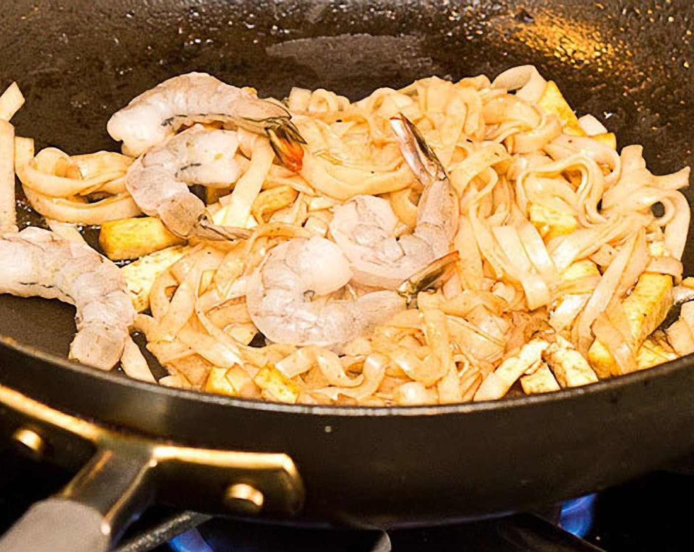Pad Thai ist ein klassisches thailändisches Pfannengericht, das mit leckeren Zutaten einfach zubereitet werden kann. Pad Thai kann auch vegetarisch gekocht werden, einfach das Poulet und die Shrimps durch etwas mehr Tofu ersetzen.