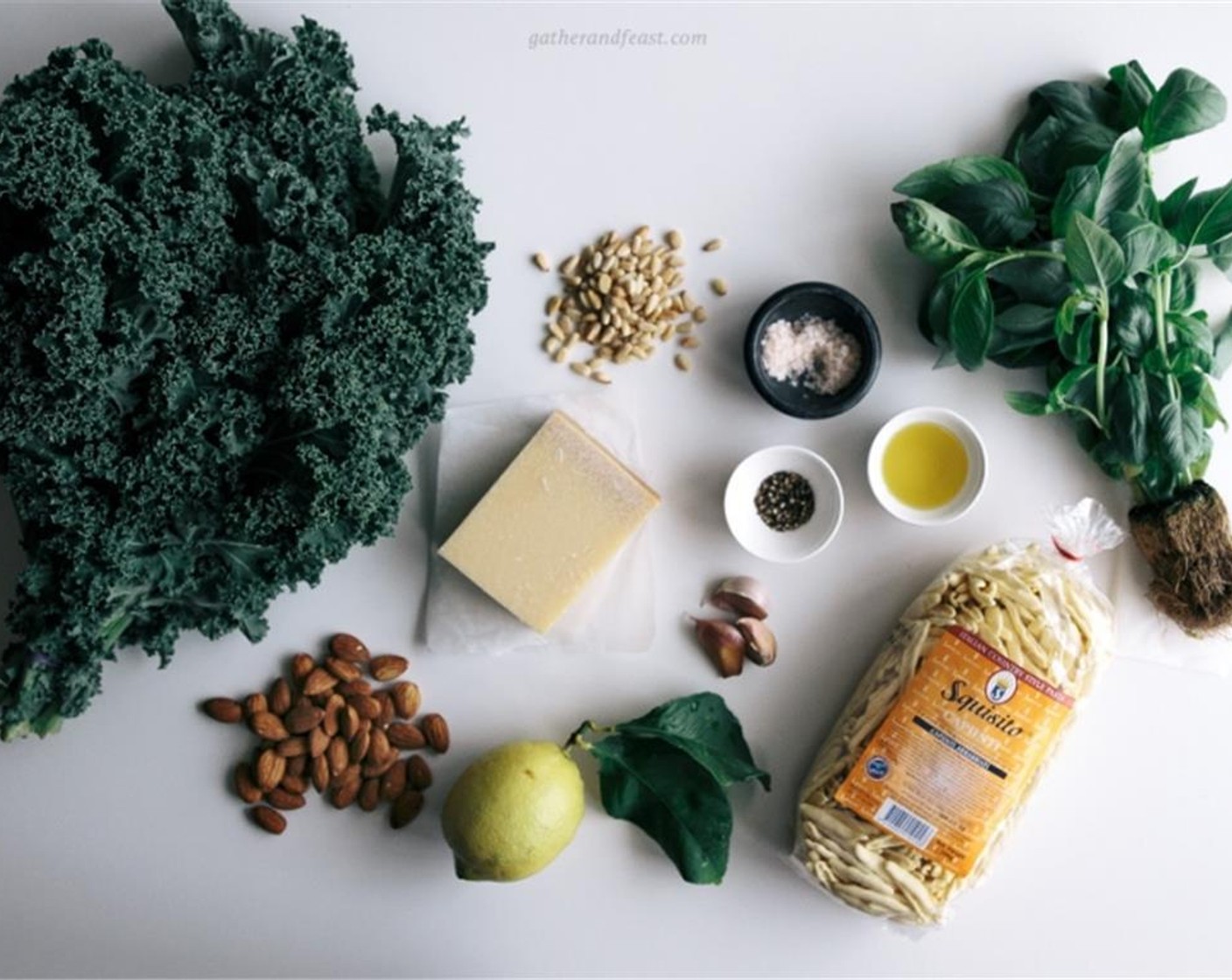Ein einfaches und schmackhaftes Rezept für Grünkohl-Basilikum-Pesto. Frischer Grünkohl und duftendes Basilikum werden zu einem aromatischen Pesto verarbeitet, das perfekt zu al dente gekochter Pasta passt. Dieses Gericht ist nicht nur gesund, sondern auch vollgepackt mit Geschmack und Nährstoffen. Ideal für ein schnelles und nahrhaftes Abendessen.