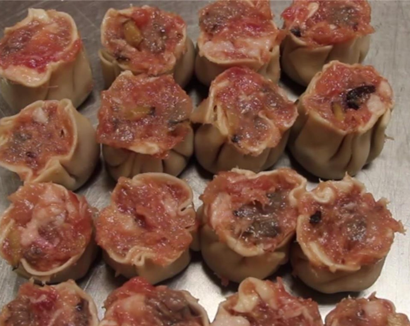 Jede Siu Mai sollte die gleiche Höhe haben.