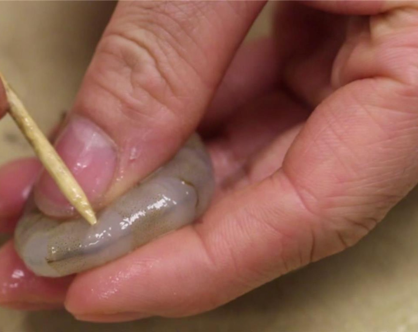 Shrimps (340 g) mit einem Zahnstocher entdarmen.