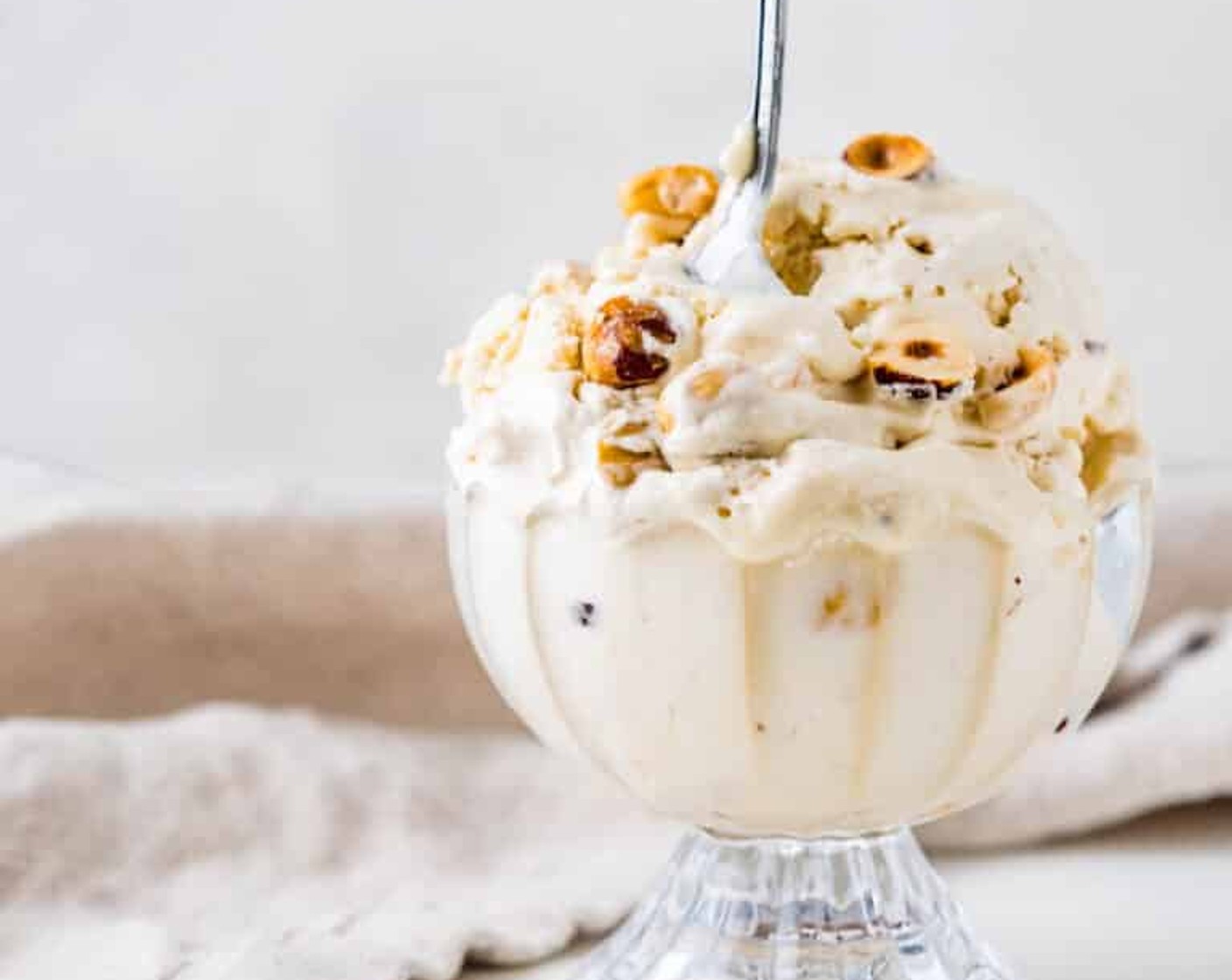 Dieses Haselnuss-Nougat-Eis ist die ultimative, einfache Sommer-Eiscreme. Mit nur sieben Zutaten und 20 Minuten Vorbereitungszeit wird dieses Eisrezept jeden beeindrucken. Die Konsistenz ist cremig und man wird sie einfach nur lieben, denn dieses Haselnusseis enthält keine Eiskristalle und kann direkt aus dem Becher gelöffelt werden.
