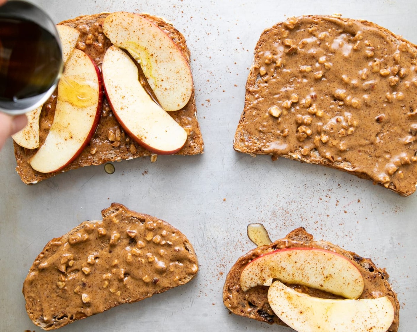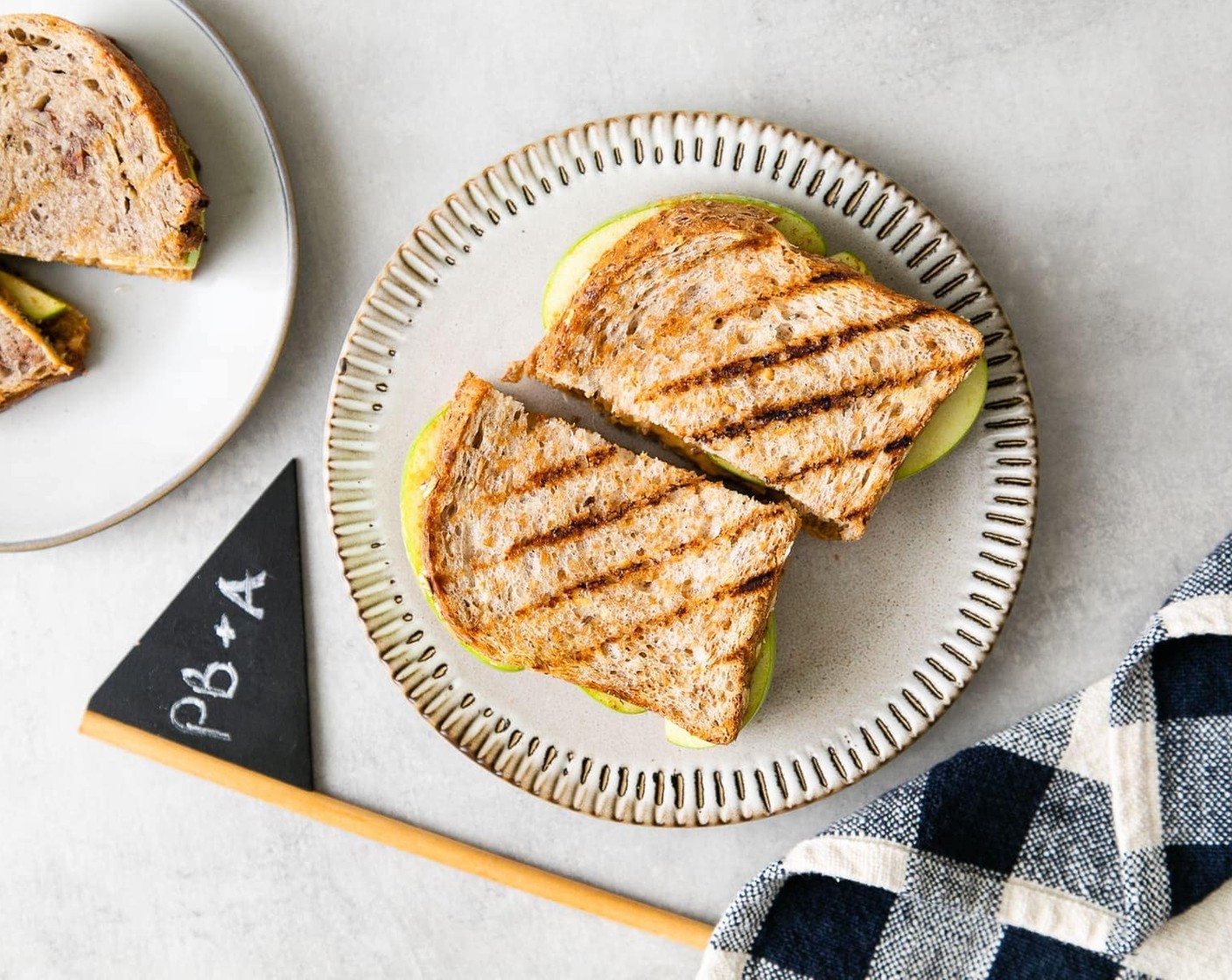 Das gegrillte Erdnussbutter-Apfel-Sandwich mit Zimt und einem Hauch von reinem Ahornsirup ist ein warmes und klebriges Sandwich, das reich an Proteinen und Ballaststoffen ist – ein gesundes Mittagessen oder ein Snack, der bei Erwachsenen und Kindern gleichermassen beliebt ist! Dieses gegrillte Erdnussbutter-Apfel-Sandwich enthält reichlich Eiweiß, Ballaststoffe und andere gute Nährwerte, die Sie auf Trab halten und glücklich machen. Ich habe mir vorgenommen, dieses einfache Sandwich als nette Abwechslung zum klassischen Erdnussbutter-Marmeladen-Sandwich in die Rezeptsammlung aufzunehmen.