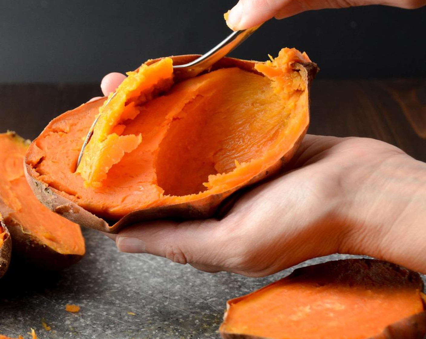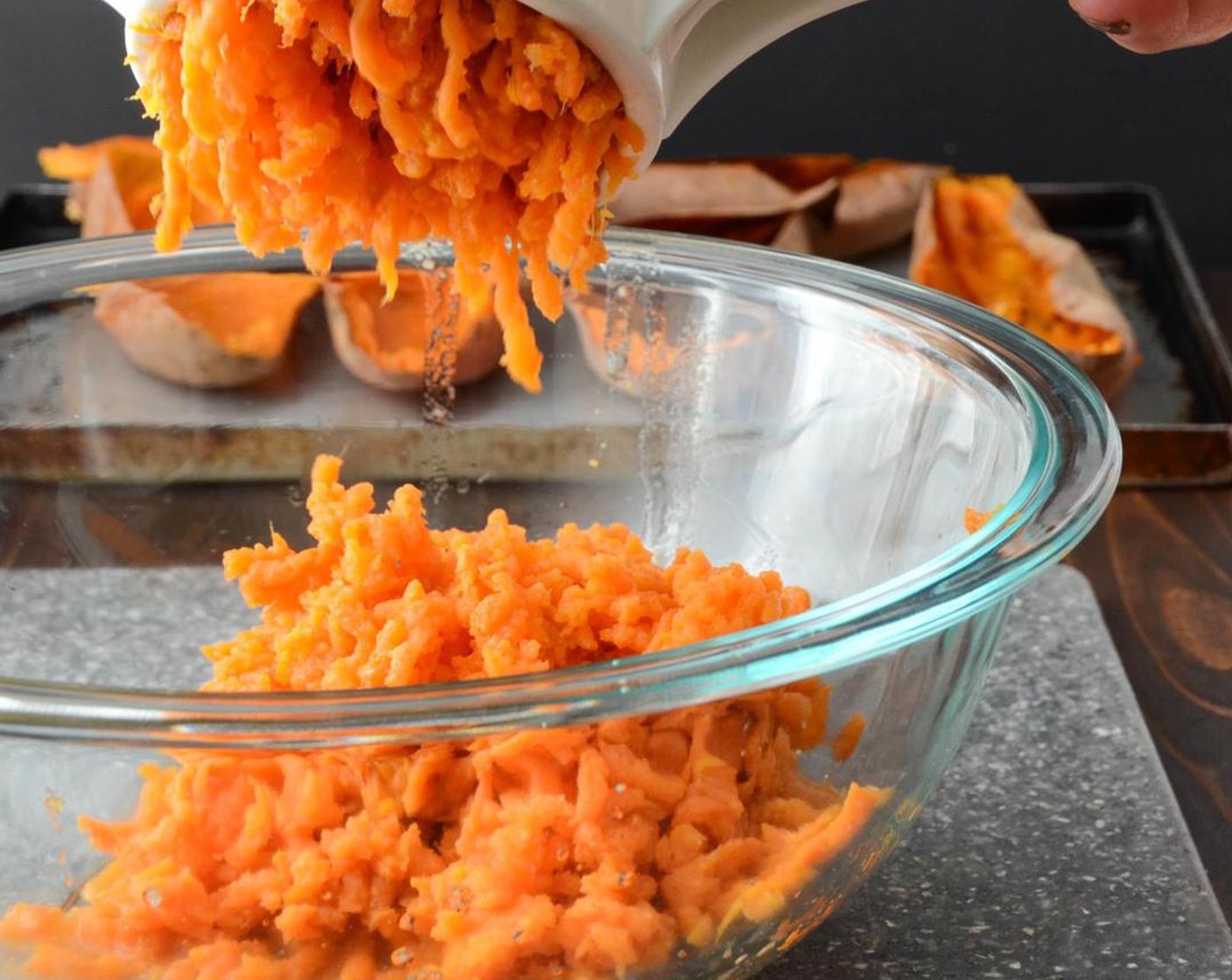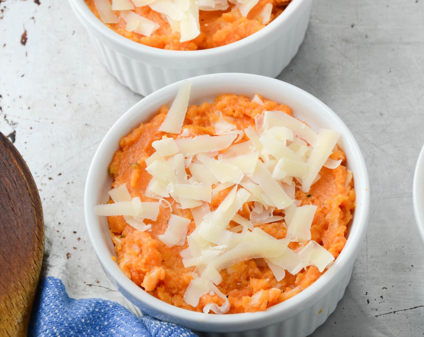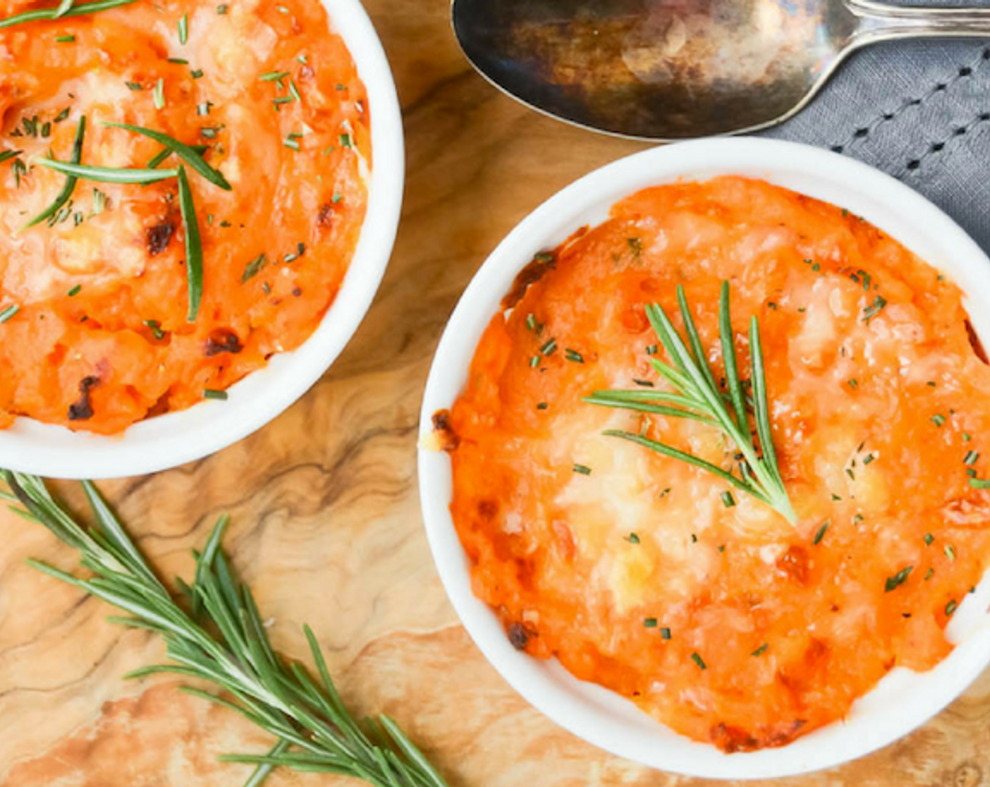 Kein gewöhnlicher Süsskartoffelauflauf - dieser Auflauf ist reichhaltig mit Gruyère-Käse.