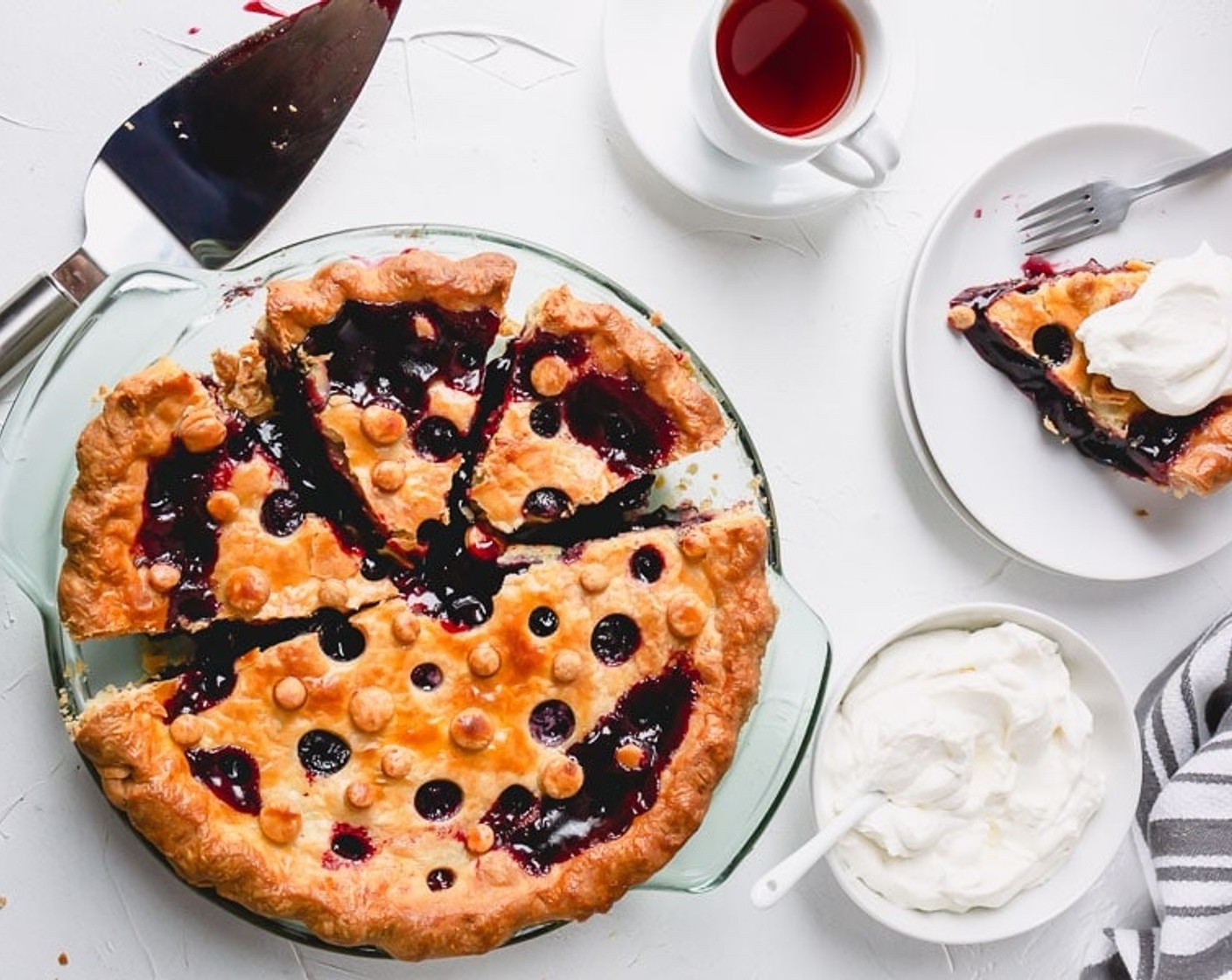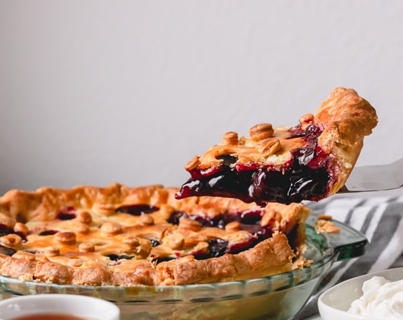 Dieser süsse Kirschkuchen ist immer ein Volltreffer! Die Füllung ist schön dick, süss und sirupartig (aber nicht zu süss) und enthält jede Menge ganze Früchte. Kuchenfüllungen aus der Dose haben gegen diese selbstgemachte Kirschkuchenfüllung absolut keine Chance.