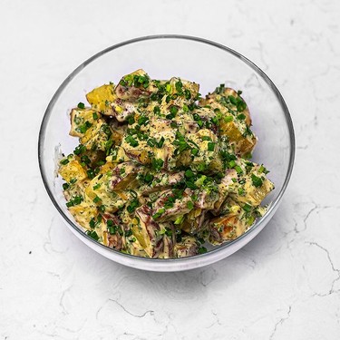 Hier haben wir einen herrlichen Kartoffelsalat! Mit Aioli perfekt gekühlt zur nächsten Grillparty oder als warme Beilage in den kälteren Monaten.