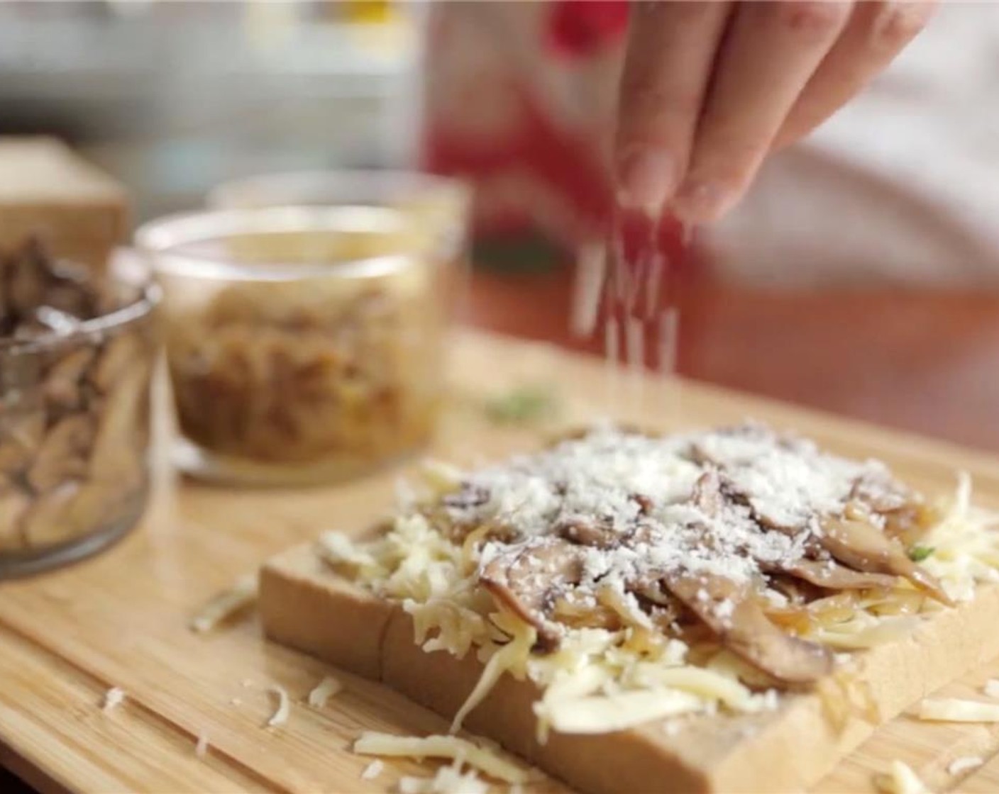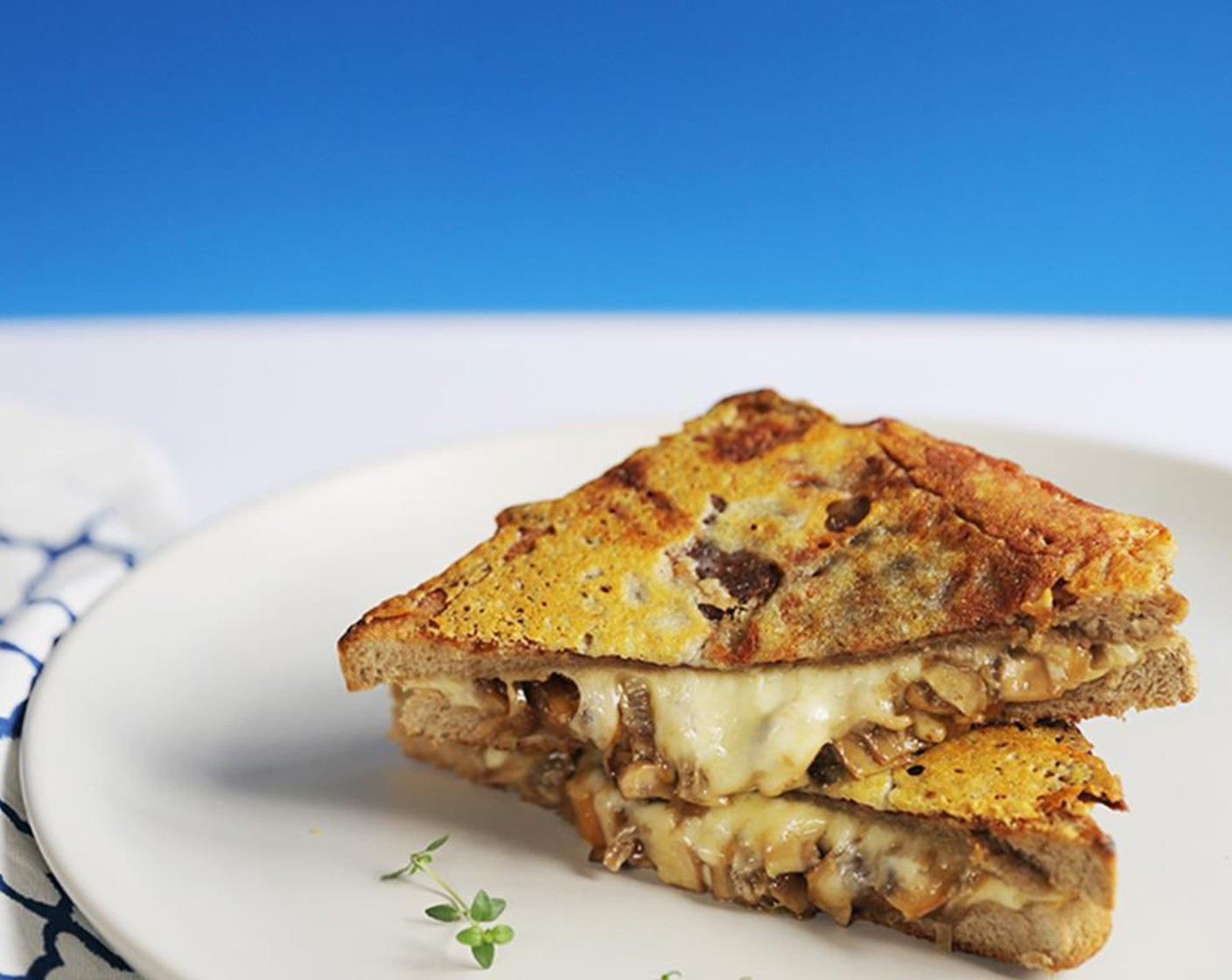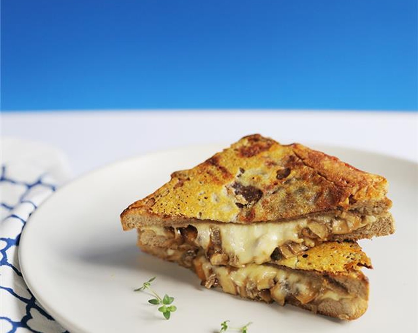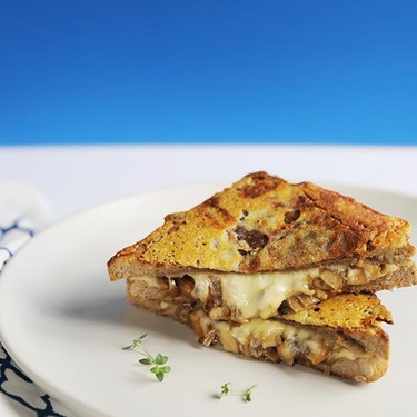 Wer sich nach dem ultimativen gegrillten Käsesandwich sehnt, sollte diese herzhafte Version mit Emmentaler, karamellisierten Zwiebeln und Pilzen probieren!