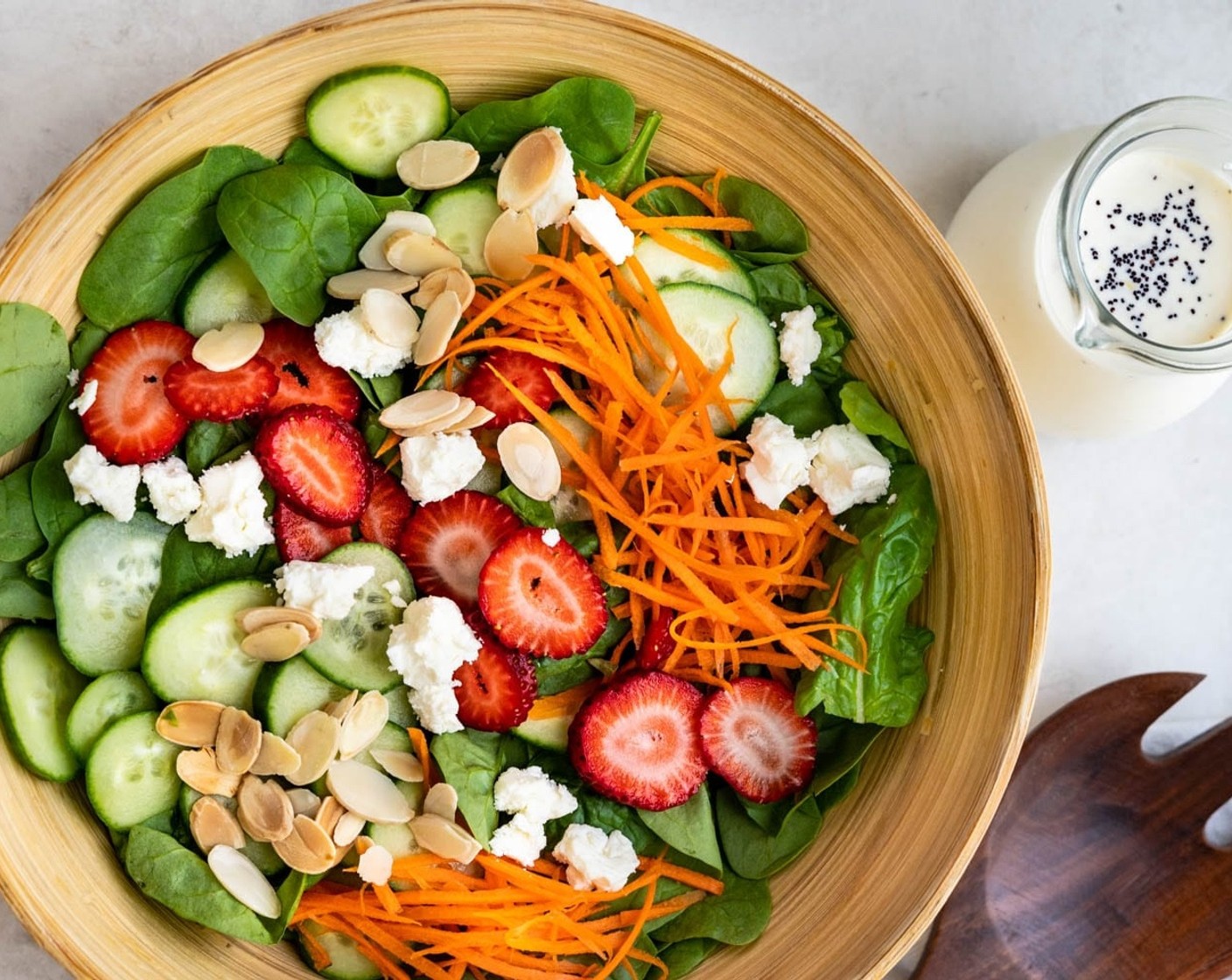 Eine frische Hommage an den Sommer! Lass die Saison nicht verstreichen, ohne diesen frischen, süssen, knusprigen, absolut unwiderstehlichen Salat aus Farben, Aromen und Texturen zu gönnen. Passend dazu ein erfrischendes Buttermilch-Dressing mit Mohn.