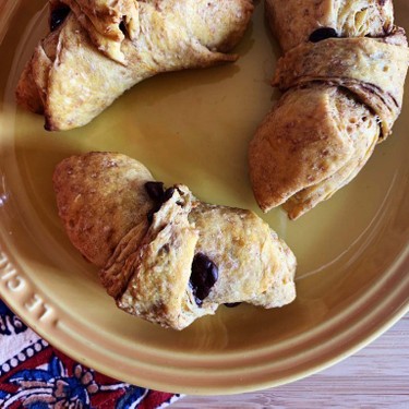 Diese weichen und veganen Croissants mit gemahlenem Zimt und dunklen Schokoladenstückchen ergeben ein supergesundes Frühstück!