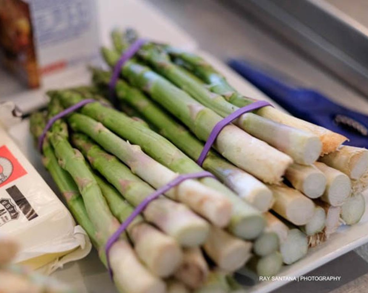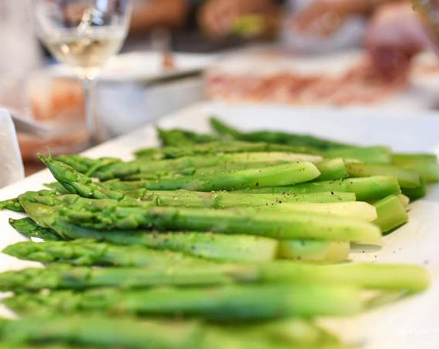 Spargel, grün, geschält, geschnitten