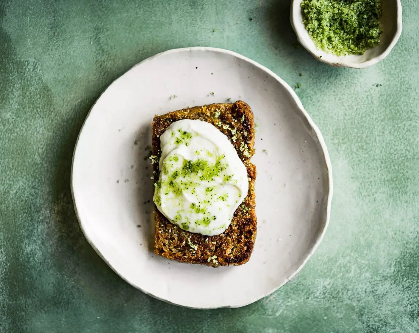 Zucchini-Brot mit Crème Fraîche und Basilikum-Zucker