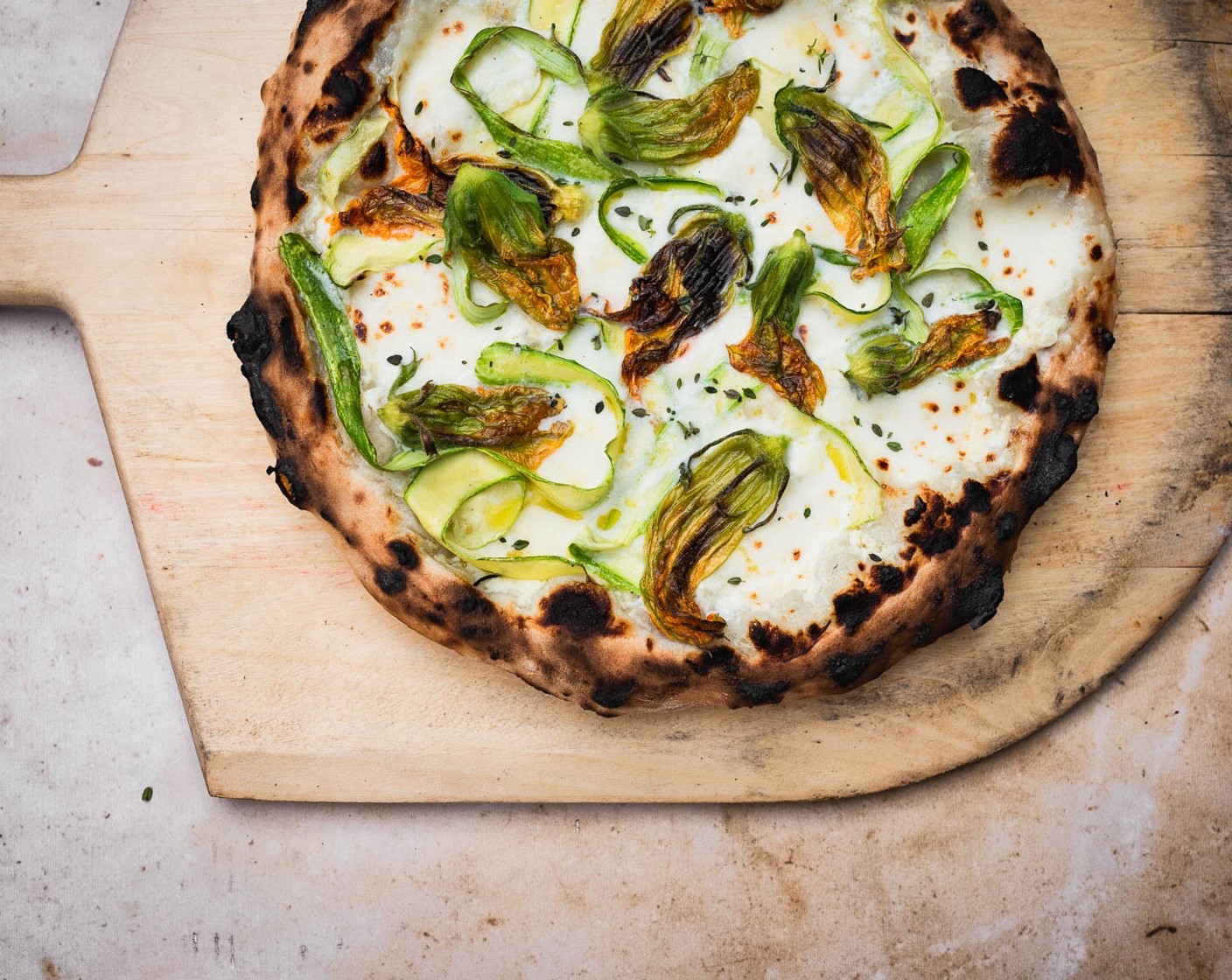 Selbst die anspruchsvollsten Gaumen werden von unserer Kürbisblütenpizza begeistert sein! Unsere Knoblauchsauce bildet die perfekte Grundlage, während der letzte Hauch von frischem Thymian den süssen und nussigen Geschmack des Kürbisses und seiner Blüten unterstreicht. Unter all den Pizzen, die wir probiert haben, war diese zweifellos unser Favorit. Bereit, deine Geschmacksnerven zu verwöhnen und ein unvergessliches kulinarisches Erlebnis zu erleben? Dann probiere unsere Kürbisblütenpizza noch heute aus!