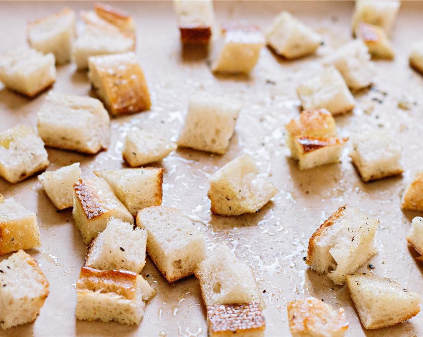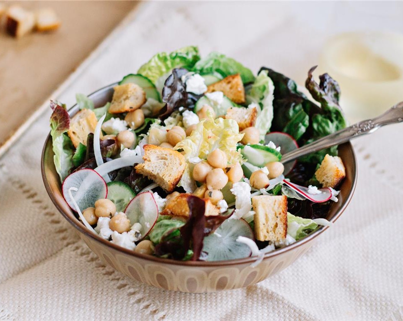 Ein herzhafter und pikanter Salat mit hausgemachten Croûtons.