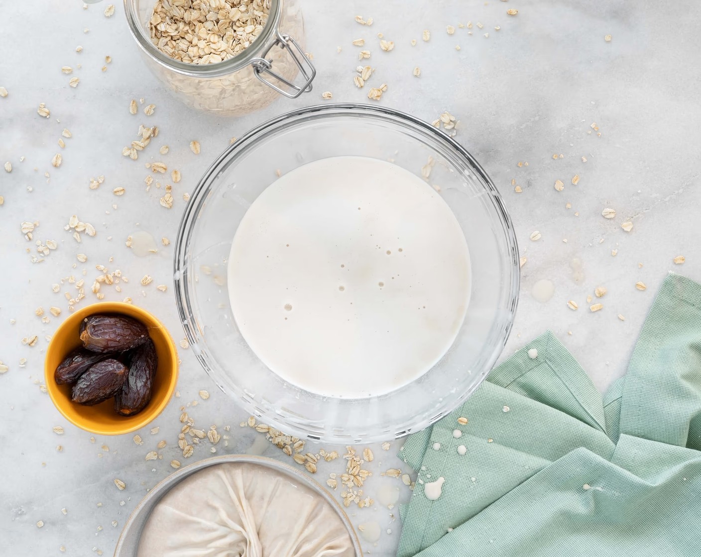 Die Zubereitung von Hafermilch ist ein kinderleichter Prozess mit einem äußerst köstlichen Ergebnis! Ob für Smoothies, Milchkaffees oder Backwaren - Hafermilch punktet mit ihrem neutralen Geschmack und ihrer Vielseitigkeit.