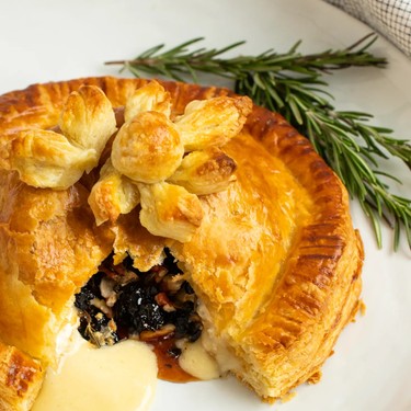 Der warme, cremige Brie mit Honig, getrockneten Kirschen und Nüssen, umhüllt von goldenem Blätterteig, ist ein raffiniertes Dessert für jede Dinnerparty. Lassen Sie sich nicht von der Optik täuschen! Dieses Rezept ist super einfach zuzubereiten.