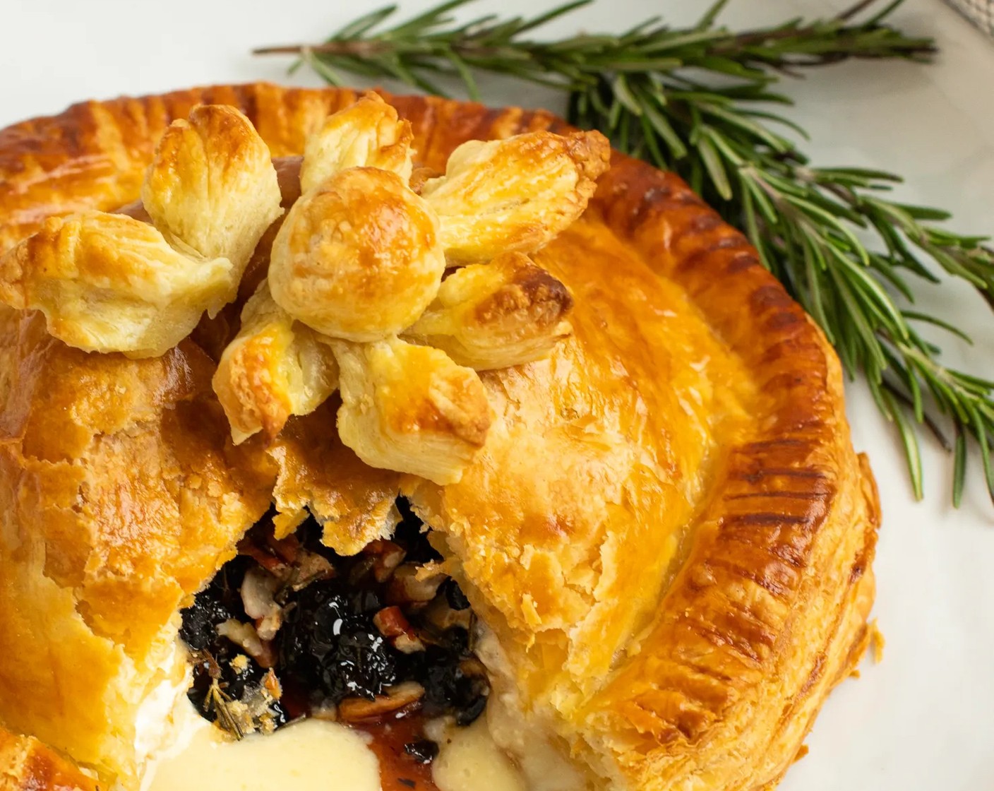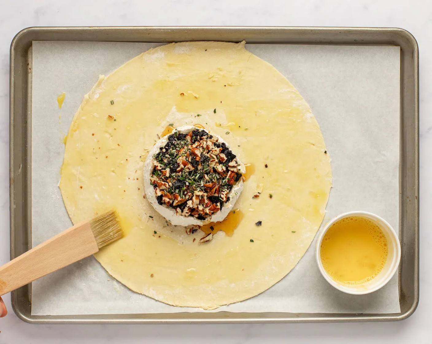 Der warme, cremige Brie mit Honig, getrockneten Kirschen und Nüssen, umhüllt von goldenem Blätterteig, ist ein raffiniertes Dessert für jede Dinnerparty. Lassen Sie sich nicht von der Optik täuschen! Dieses Rezept ist super einfach zuzubereiten.