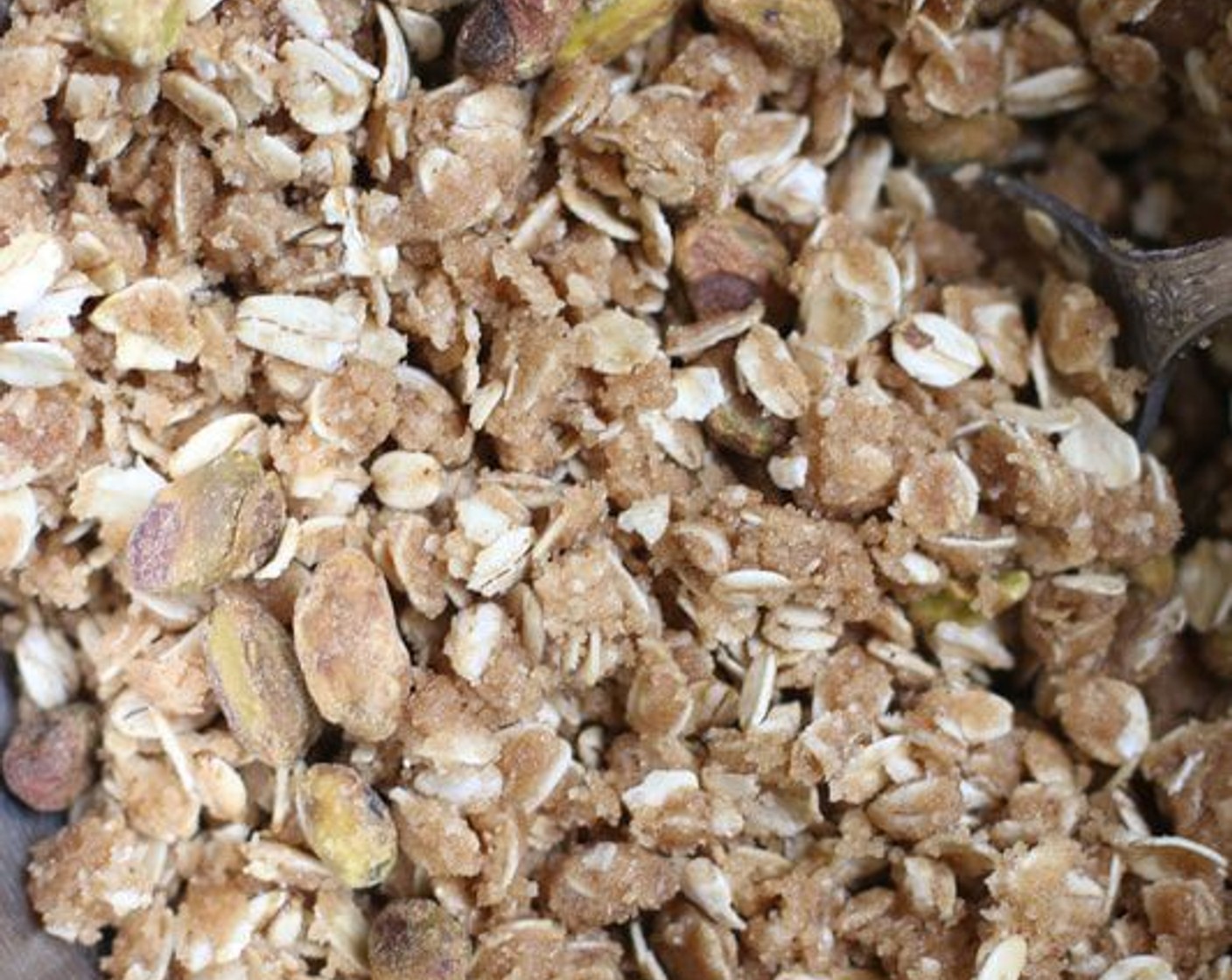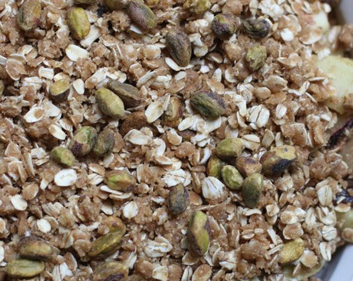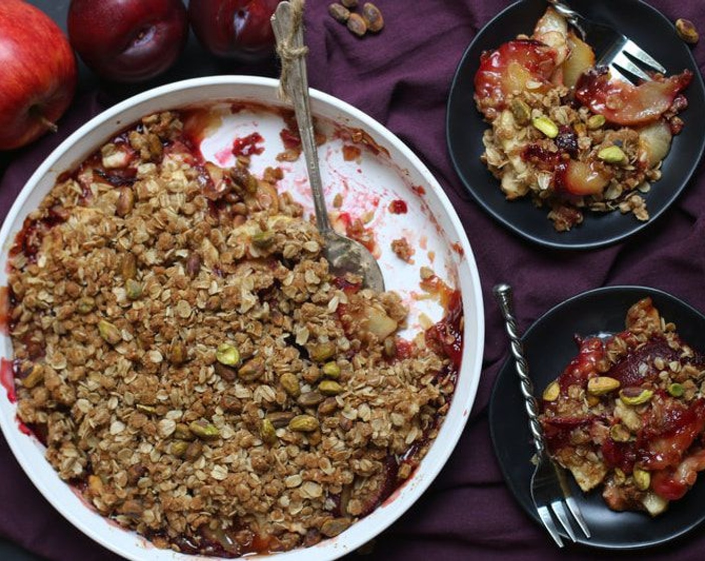 Kardamom, kombiniert mit Äpfeln und Pflaumen, mit einer Prise frischer Pistazien sind kaum etwas, das man jeden Tag zusammenbringt, aber die Kombination ist einfach nur himmlisch. Kardamom wird sowohl bei süssen als auch bei herzhaften Gerichten verwendet und ist gleich nach Safran enes der teuersten Gewürze der Welt. Nichtsdestotrotz, ist der Pflaumen- und Apfel-Kardamom-Crumble wahrscheinlich der beste Crumble oder Streuselkuchen, den es gibt! High-End-Restaurant-Qualität, aber so einfach zu Hause zu machen. Jeder wird dich darum bitten, das Rezept weiterzureichen.