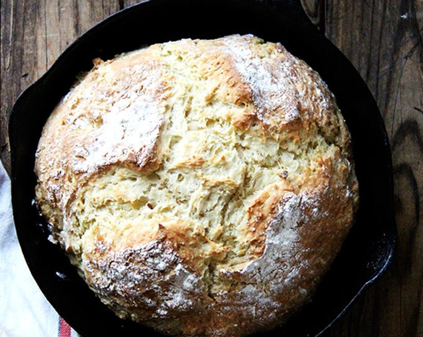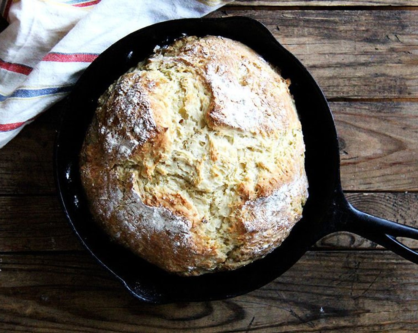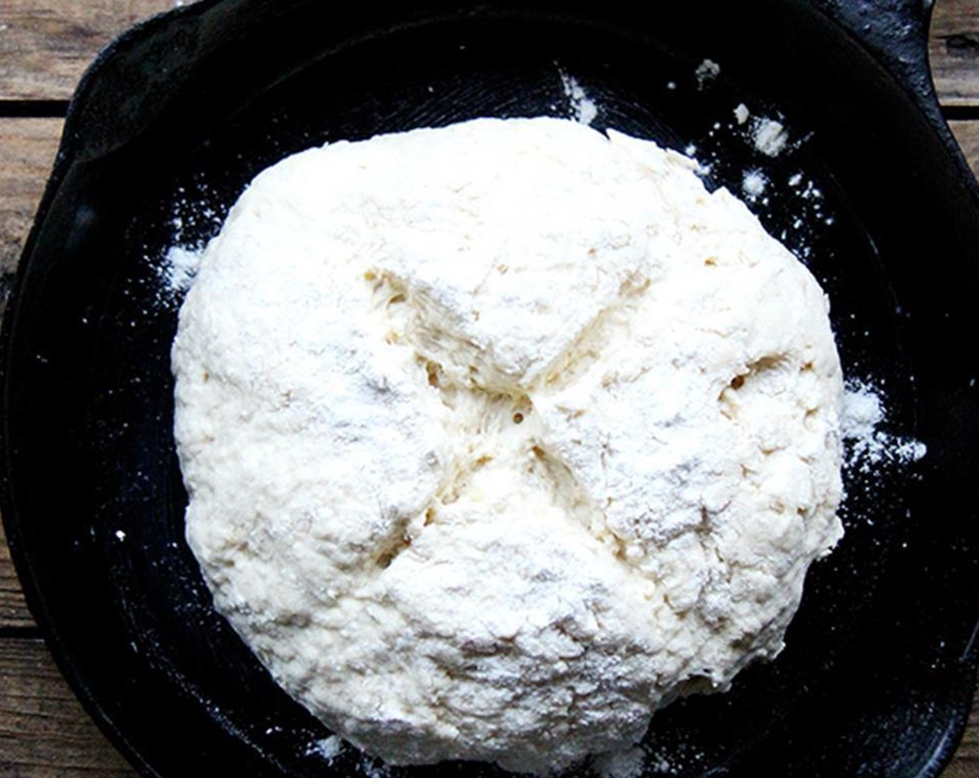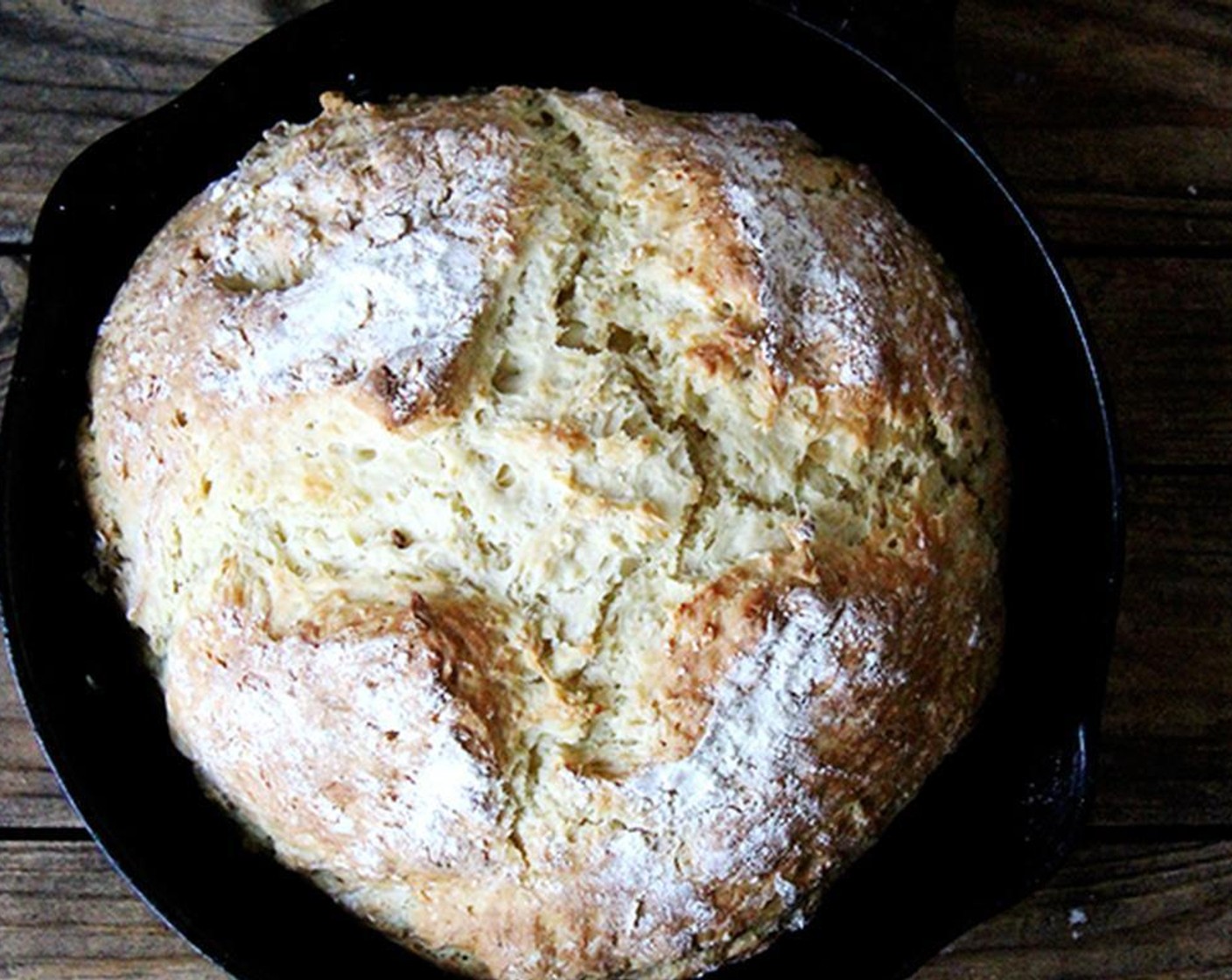 Für dieses einfache irische Sodabrot braucht man nur 5 Minuten Zeit, um Mehl, Salz, Zucker, Backpulver, ein Ei, Buttermilch und Butter zu vermischen. Es kommt mit der perfekten Krume aus dem Ofen. Es wird keine Hefe verwendet und ist innerhalb einer Stunde fertig.