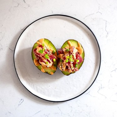 Bei diesem Rezept werden Avocado-Hälften mit mariniertem rohen Thunfisch himmelhoch gestapelt. Mit einer cremigen, würzigen Mayo beträufelt, passt dieses kochfreie und leichte Gericht hervorragend in ein sommerliches Abendessen oder ein leichtes und erfrischendes Mittagessen.