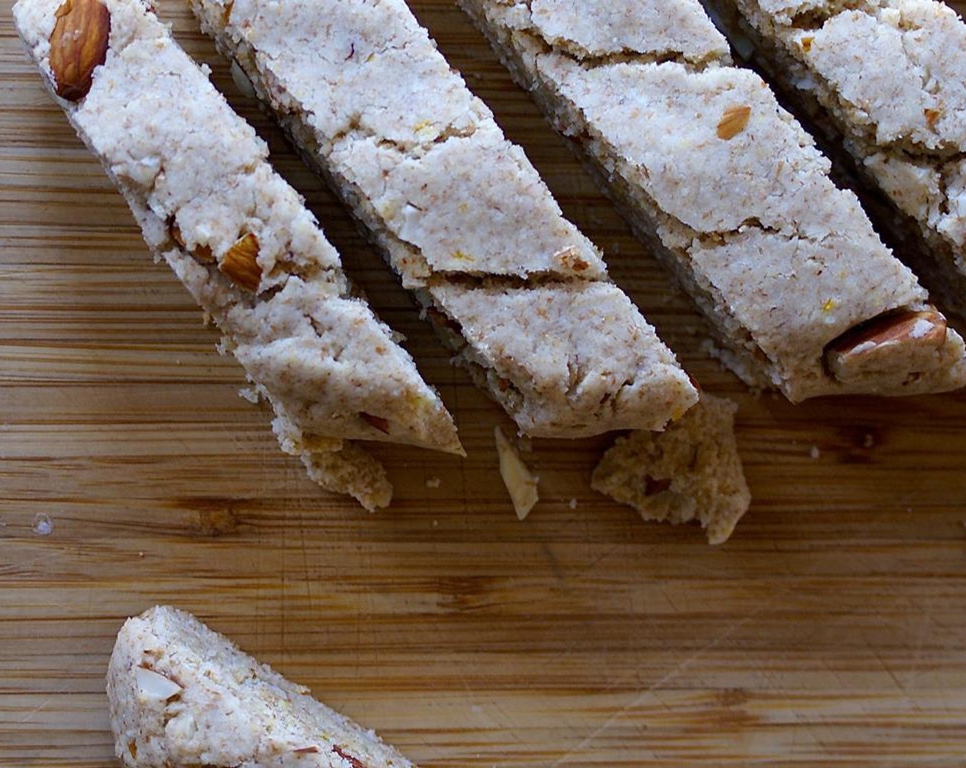 Eine köstliche Mischung aus Orangen- und Zitronenaromen in einem klassischen italienischen Gebäck. In dunkle Schokolade getaucht und mit gehobelten Mandeln bestreut – köstlich als Snack, zum Tee oder zum Frühstück!