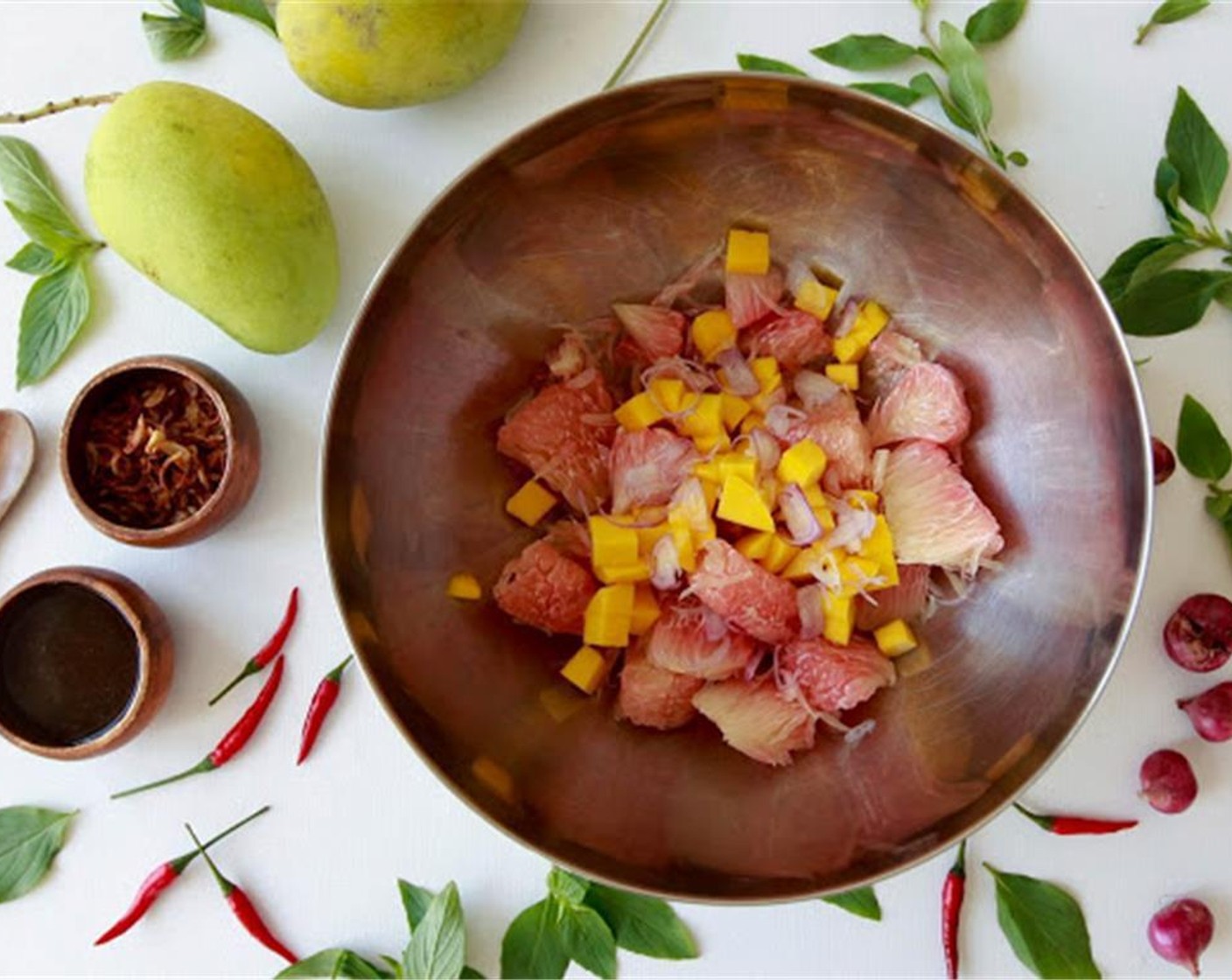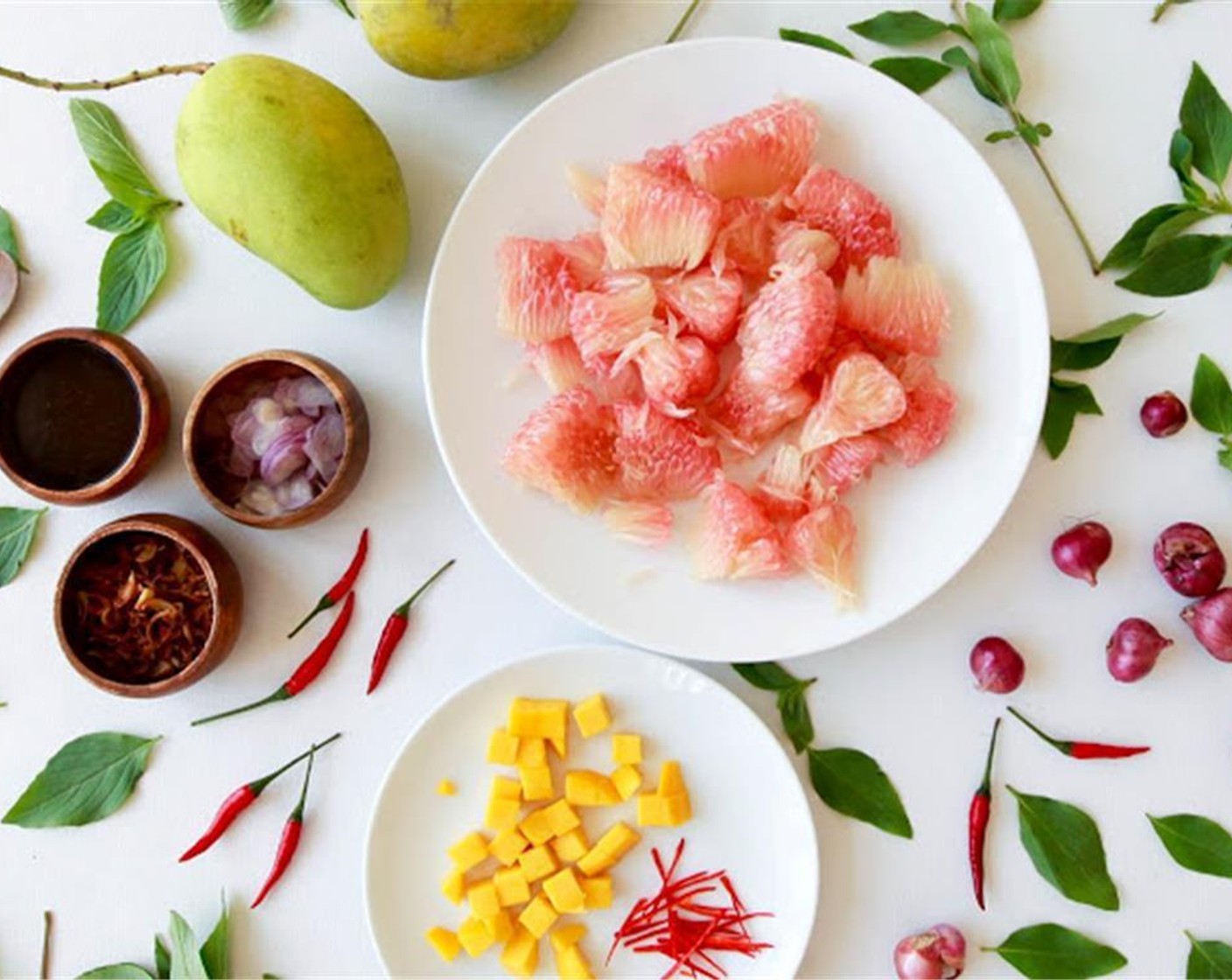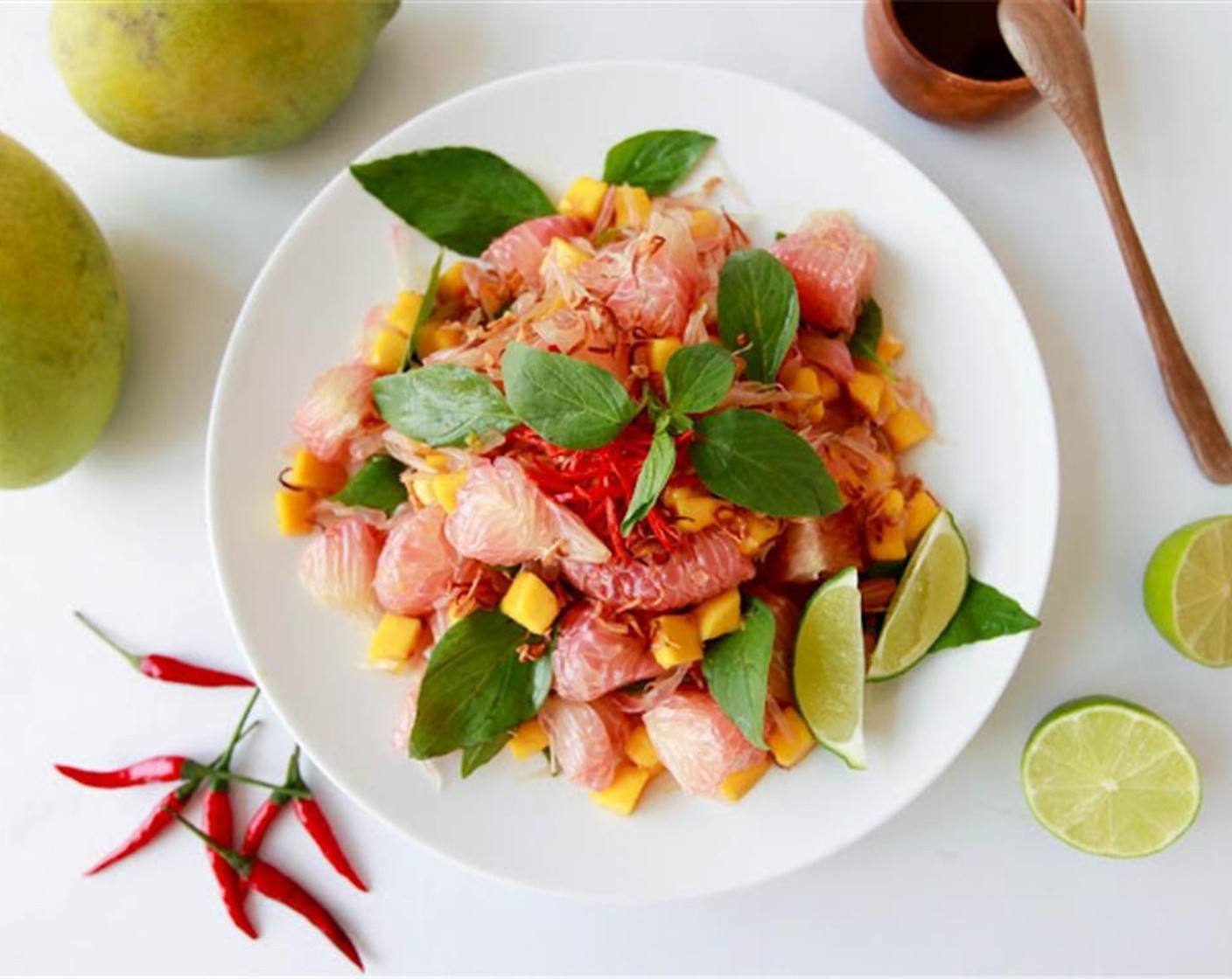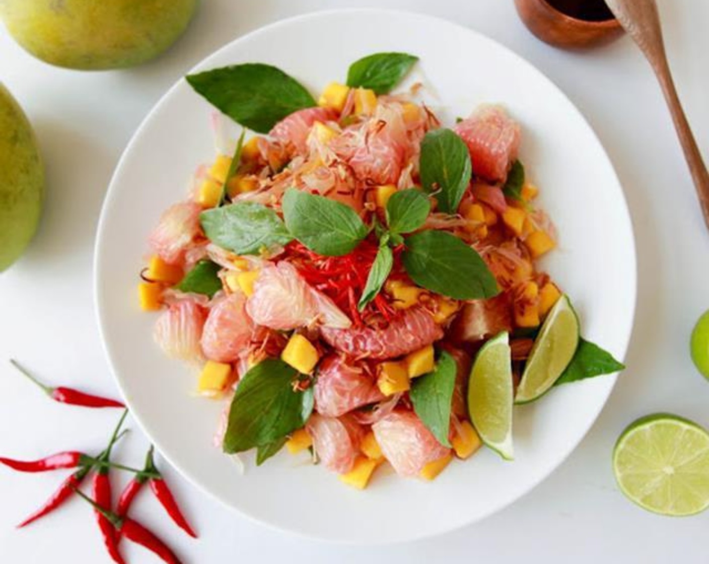 Der vietnamesische Pomelosalat ist leicht und erfrischend und eignet sich gut als Vorspeise oder Beilage zu einer asiatisch inspirierten Mahlzeit.