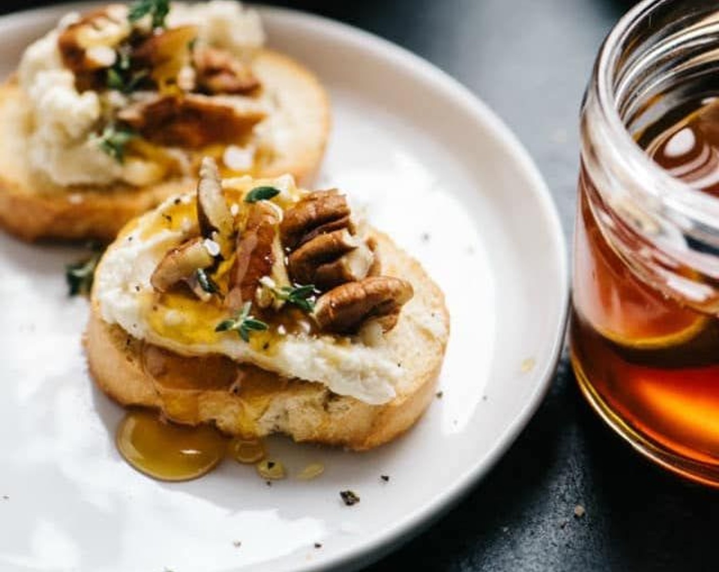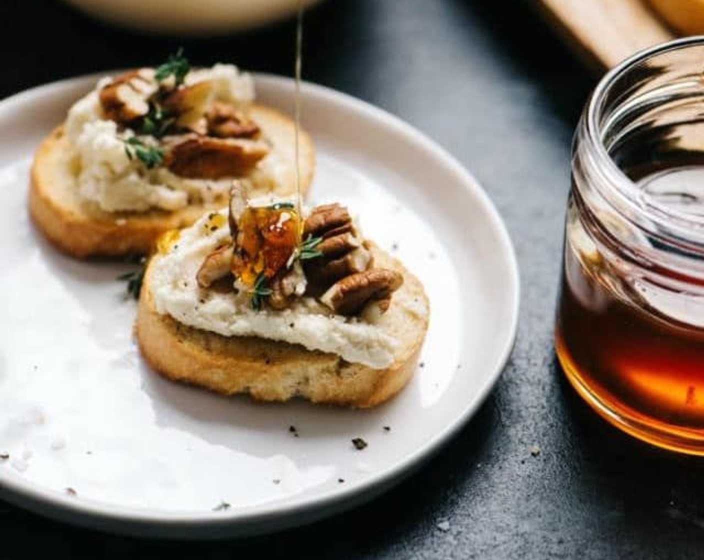 Dieses Rezept für Ziegenkäse-Crostini mit Honig, Pekannüssen und Thymian könnte nicht einfacher sein, und alle Aromen passen so gut zusammen. Die süssen Noten des Honigs harmonieren perfekt mit dem weichen und cremigen Ziegenkäse, der mit frischem Thymian verfeinert wird - und das Ganze wird durch die knackigen Pekannüsse abgerundet.