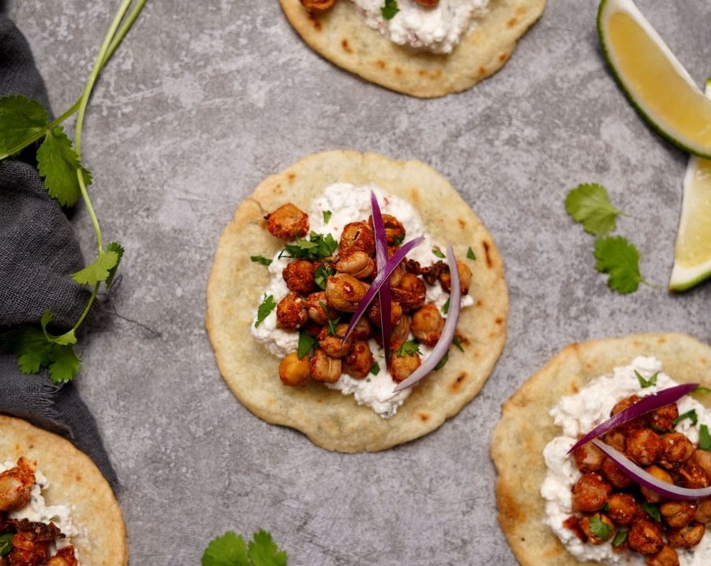 Pikanter Hüttenkäse und knusprige, gewürzte Kichererbsen – perfekt ausbalanciert auf warmen, knusprigen Tortillas. Dieses köstliche Tostada-Rezept ist eine einzigartige, fleischlose Geschmackskombination, die selbst den eingefleischtesten Fleischessern Appetit auf mehr macht! Ideal als Snack, Vorspeise, Mittagessen oder leichtes Abendessen.