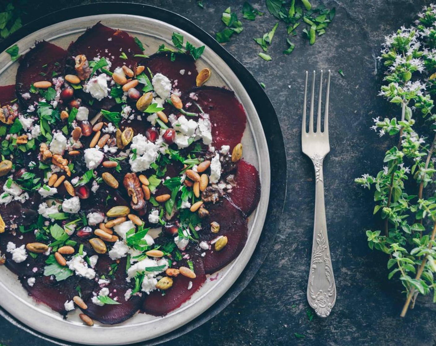 Randen oder Rote Bete haben das ganze Jahr Saison. Im Sommer kombiniere ich sie gerne mit Kräutern, Nüssen und Feta. Und wer gerne auf dem Markt einkauft wie ich, kann sogar die Blätter ganz im Sinne von Leaf to Root wunderbar verwenden.