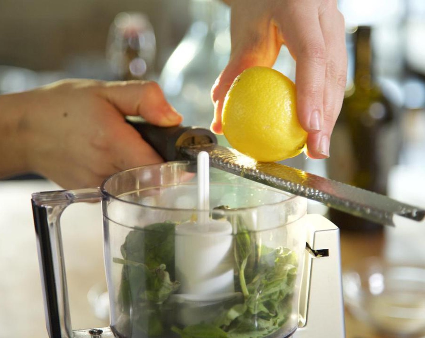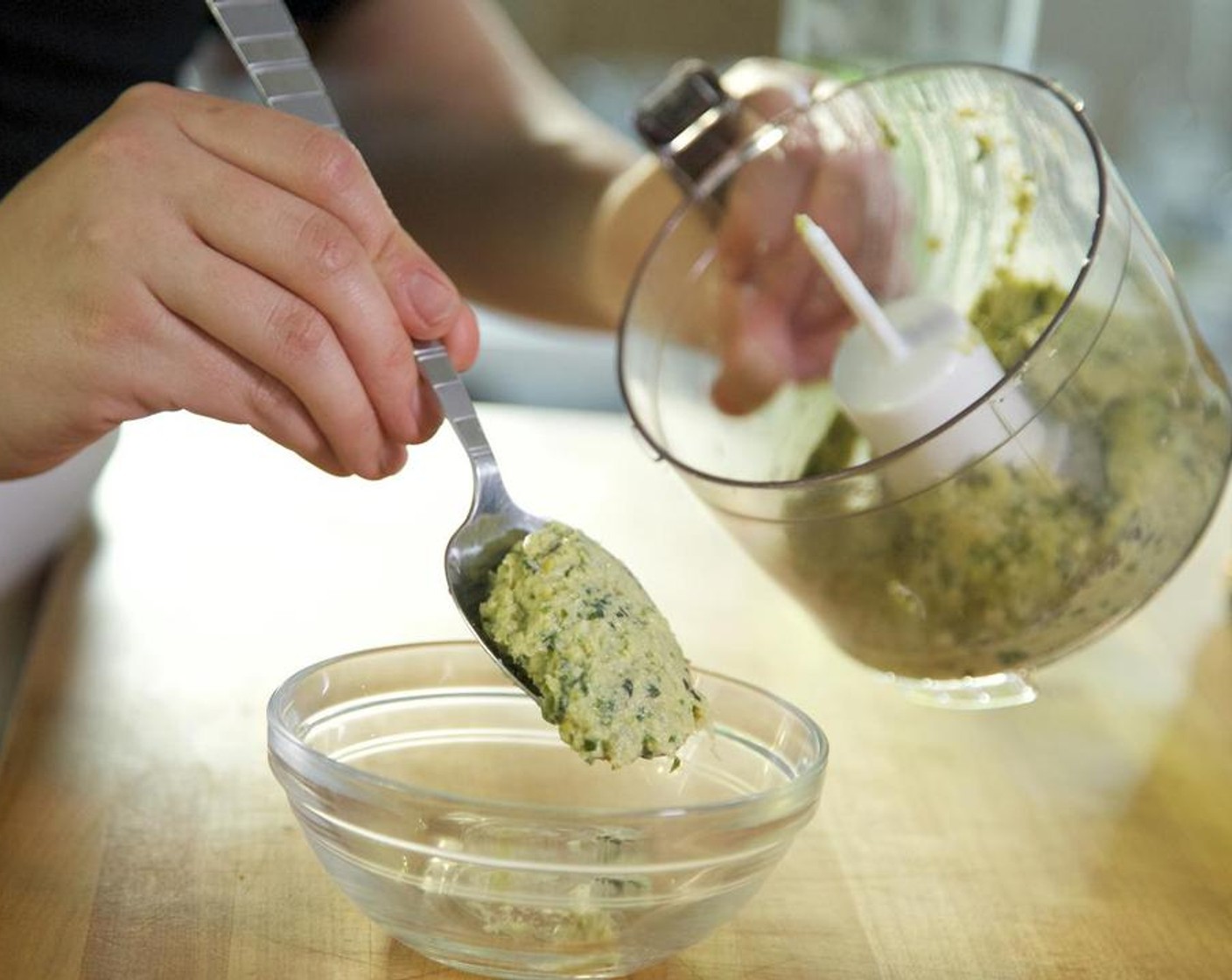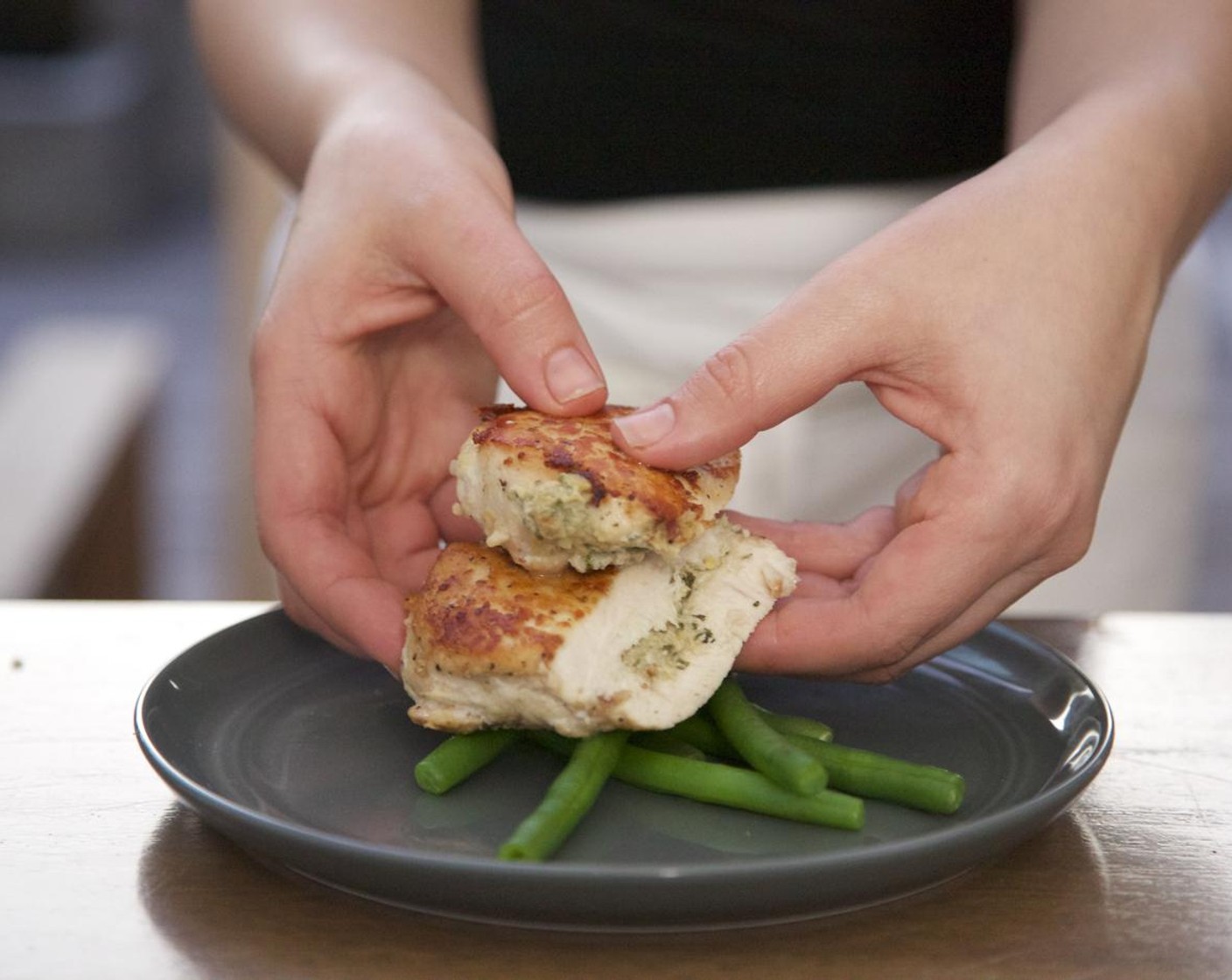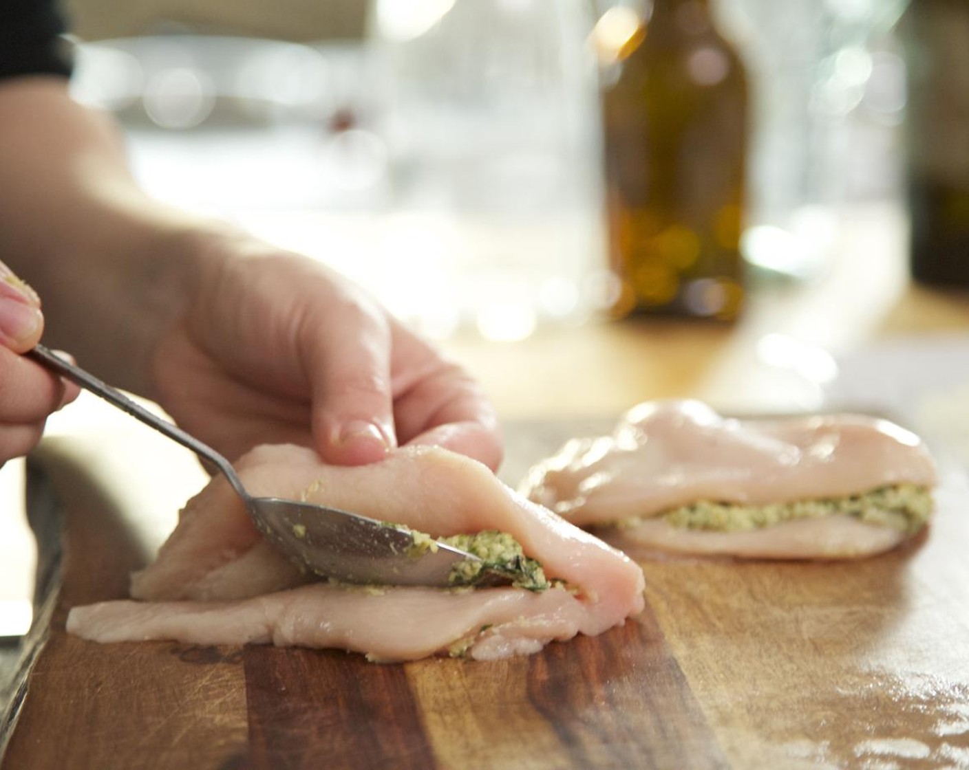 Poulet ist ein mageres Protein, das satt macht, ohne die Pfunde in die Höhe zu treiben. Die Walnüsse liefern gesundes Fett und jede Menge nussigen Geschmack – und in Kombination mit dem Parmesan, voila!