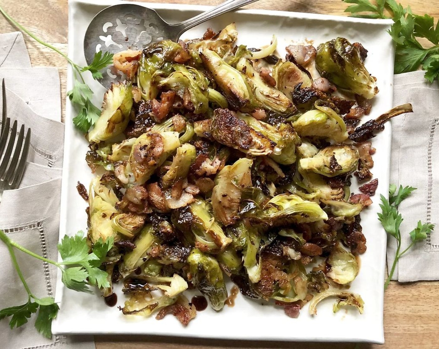 Überbackener Balsamico-Rosenkohl mit Speck