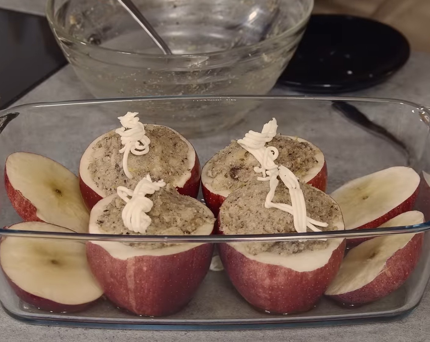 Bratäpfel mit Haselnüssen, Rosinen und Honig