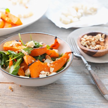 Gerösteter Kürbis mit Ziegenkäse und Rucola