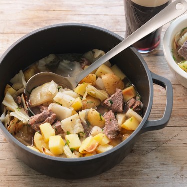 Kartoffeln (500 g) schälen und in 2 cm grosse Würfel schneiden. Danach den Weisskabis (1 Kopf) in 3 cm grosse Würfel schneiden. Anschliessend Rinderbouillon (1 L) Lamm (500 g), Kartoffeln, Kohl, Kümmel (1/2 TL) und Lorbeerblatt (1) in die Porzellanform geben und mit Salz (wenig) und Pfeffer (wenig) würzen. Danach die Porzellanform auf den Gitterrost in den kalten Ofen zum Garen schieben.