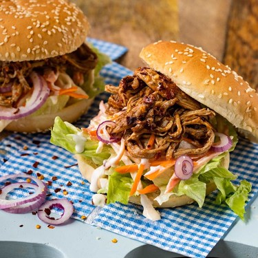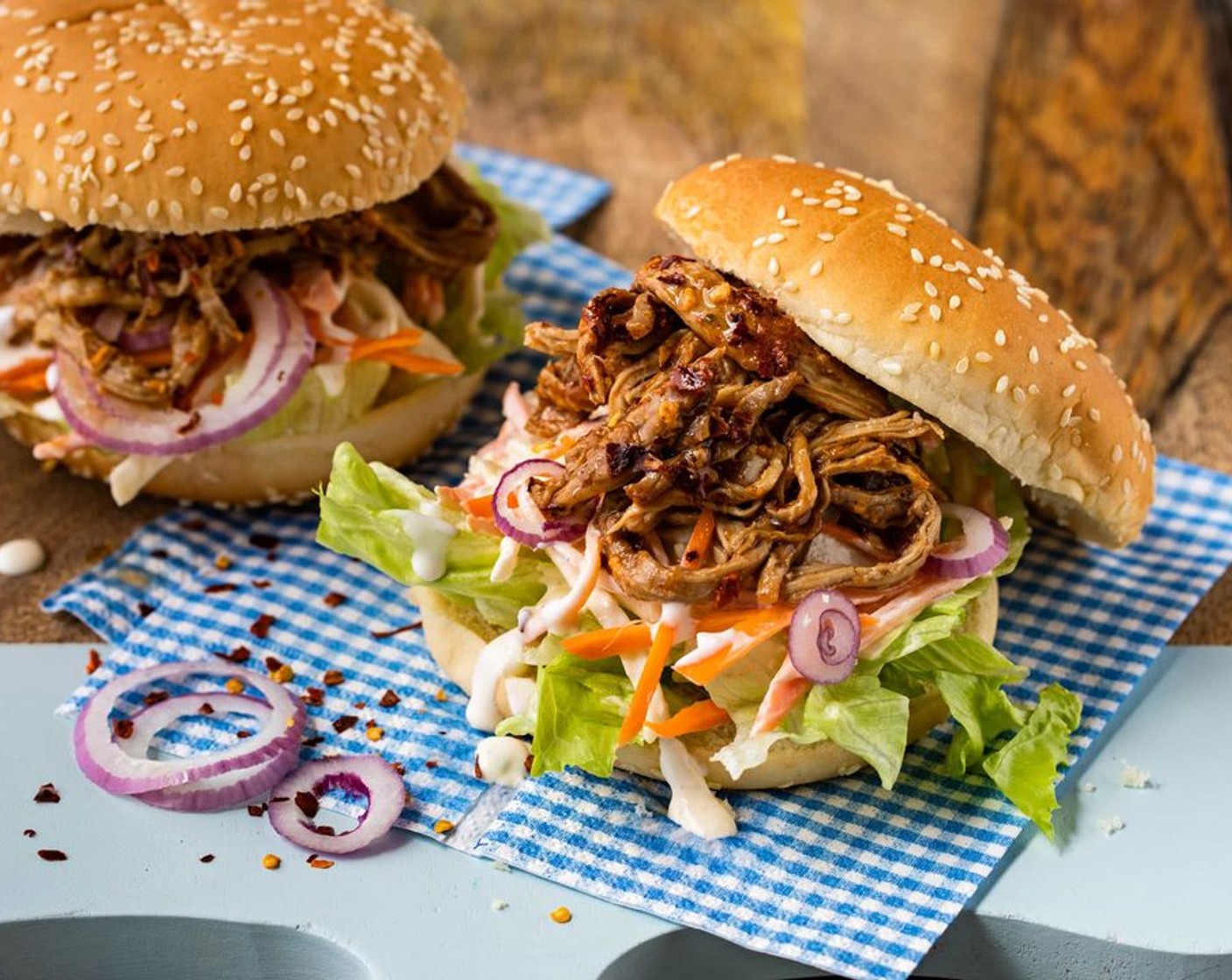 Ein Burger der besonderen Art: Pulled Pork, Coleslaw, Eisbergsalat. Alles selbst gemacht und aus der Schweiz. Wir ❤ saisonal & regional.