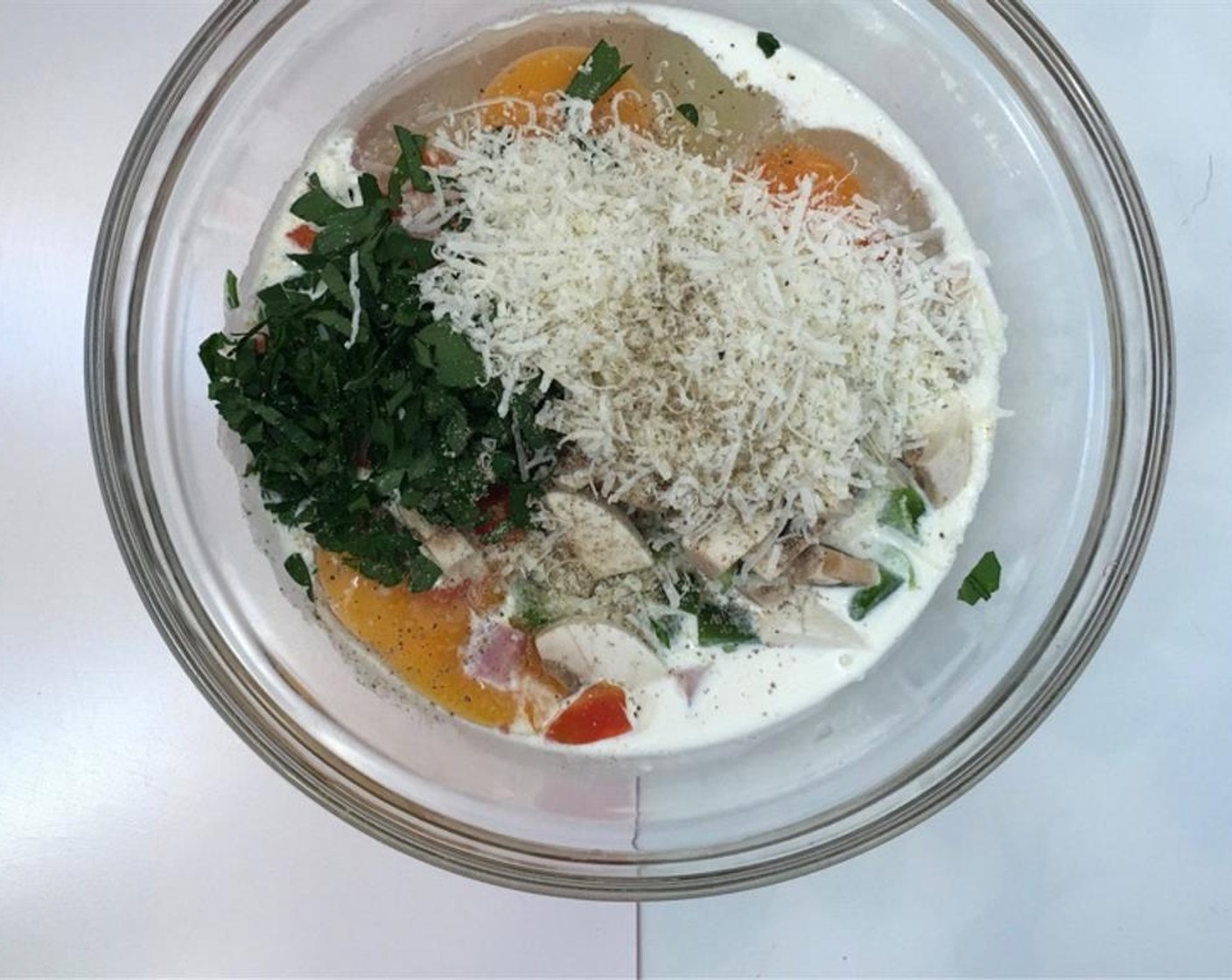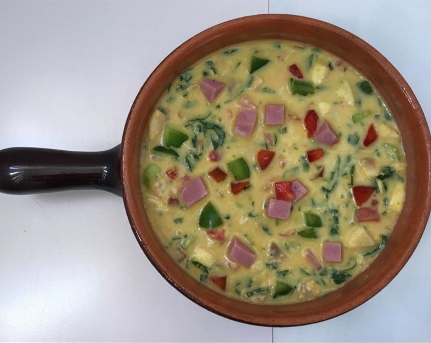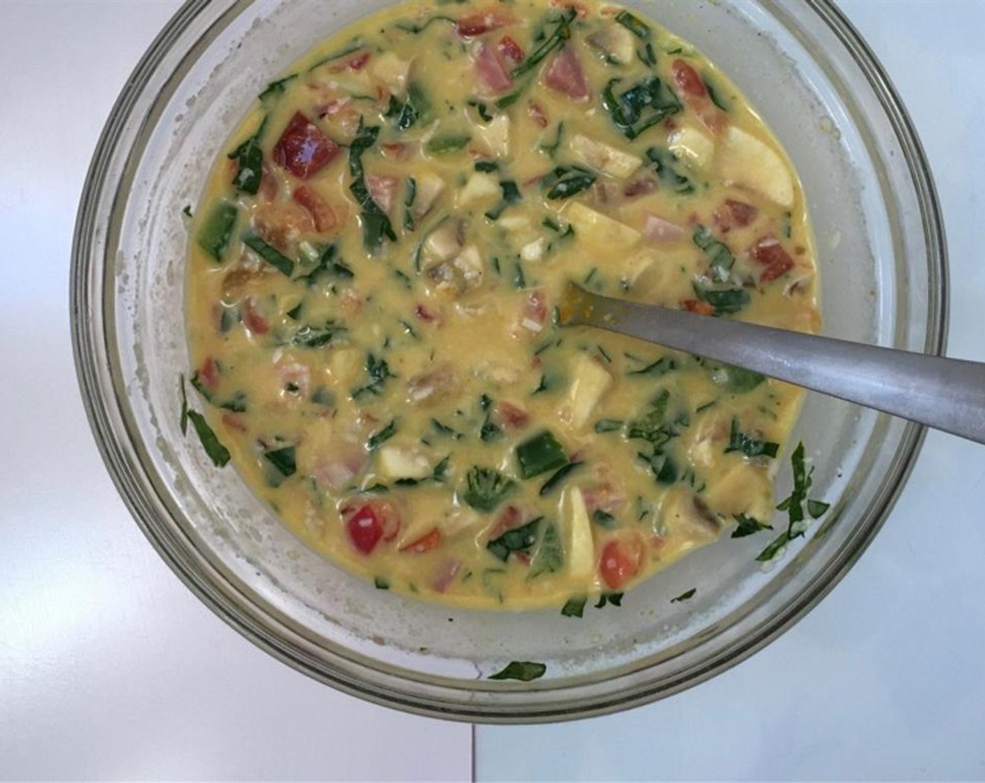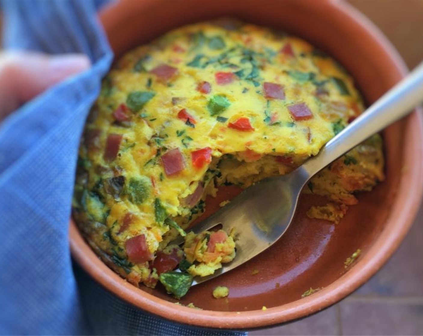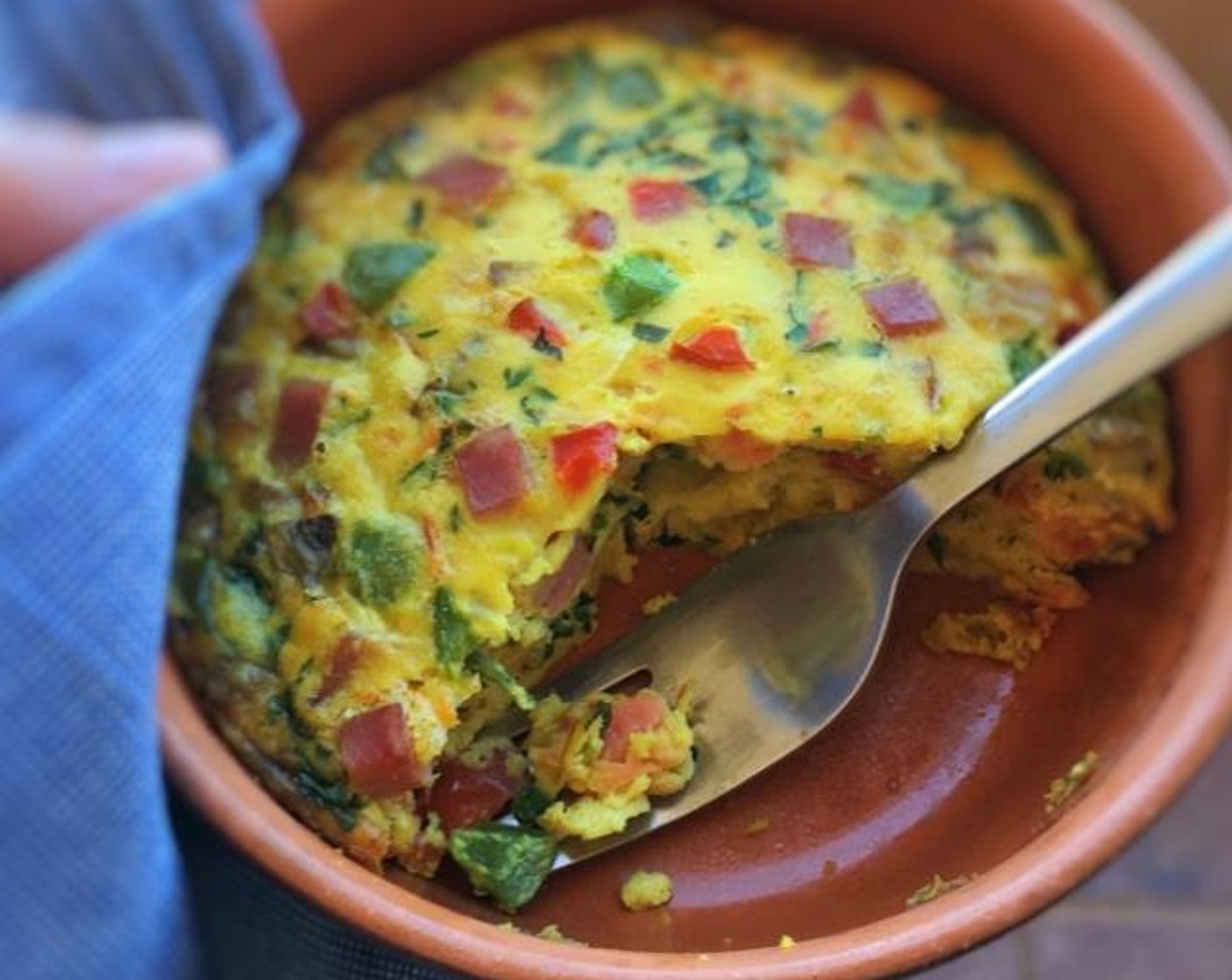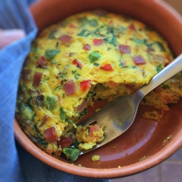 Ein deftiges im Ofen gebackenes Omelett mit Speck, geriebenem Käse und buntem Gemüse. Dieser Frühstücksauflauf ist eine tolle Idee für die Resteverwertung!