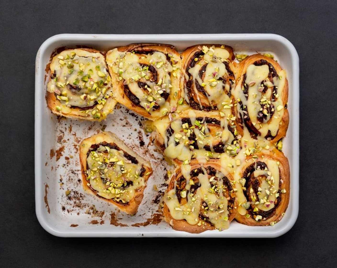 Sobald die Brötchen abgekühlt sind, die Glasur über die Brötchen träufeln. Mit weiteren Pistazien bestreuen und warm servieren!