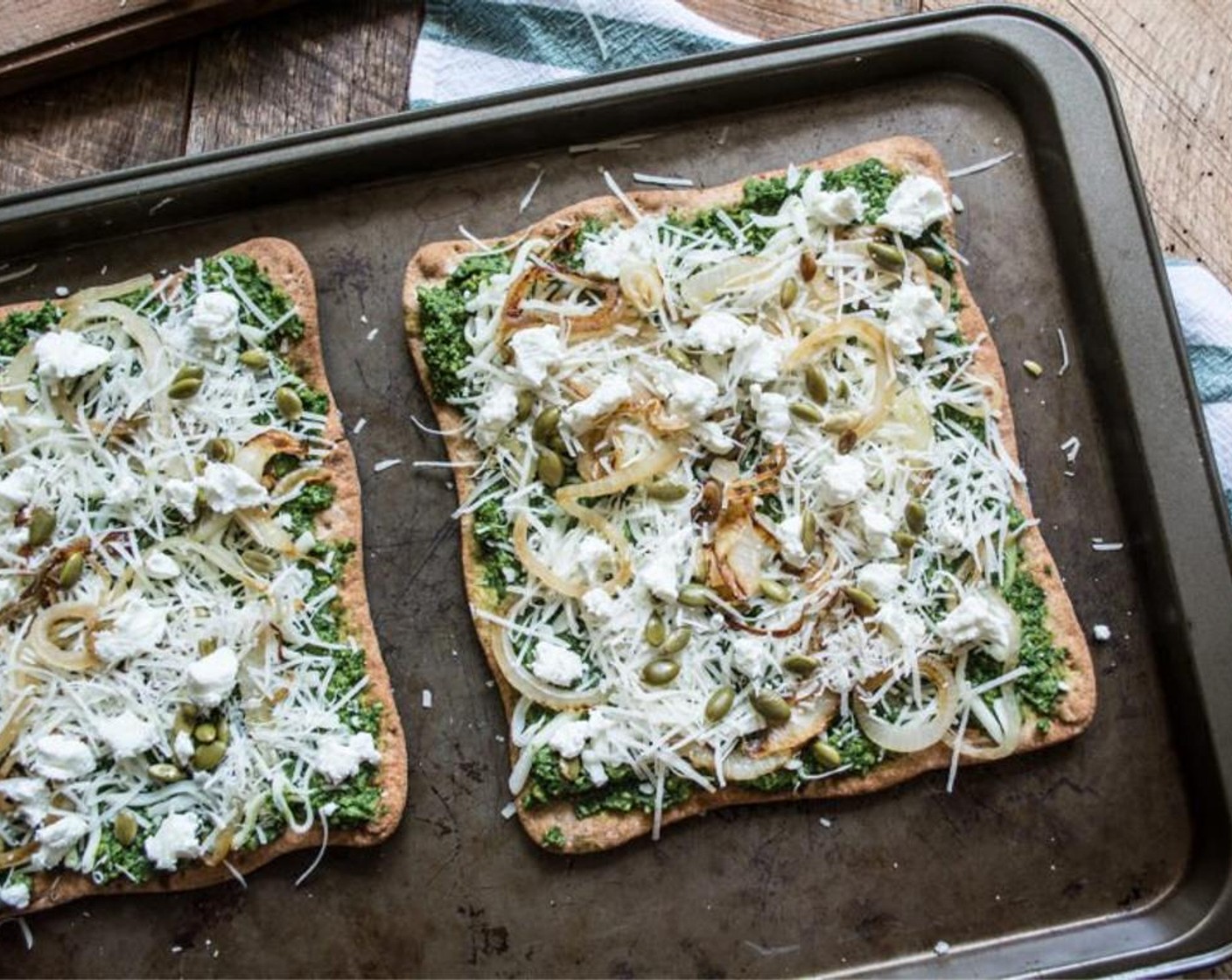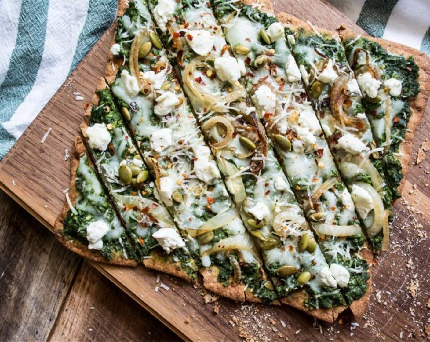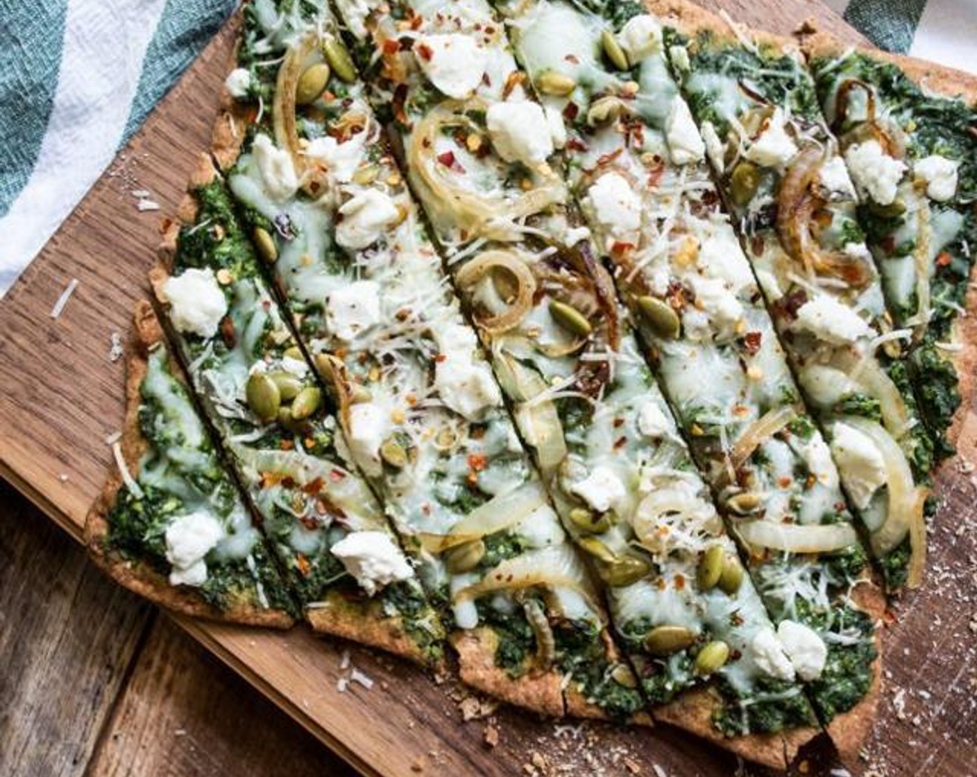 Diese Drei-Käse-Spinat-Pesto-Pizza ist ein absoluter Favorit in unserem Haus, so viel Geschmack gepaart mit gesunder Köstlichkeit!