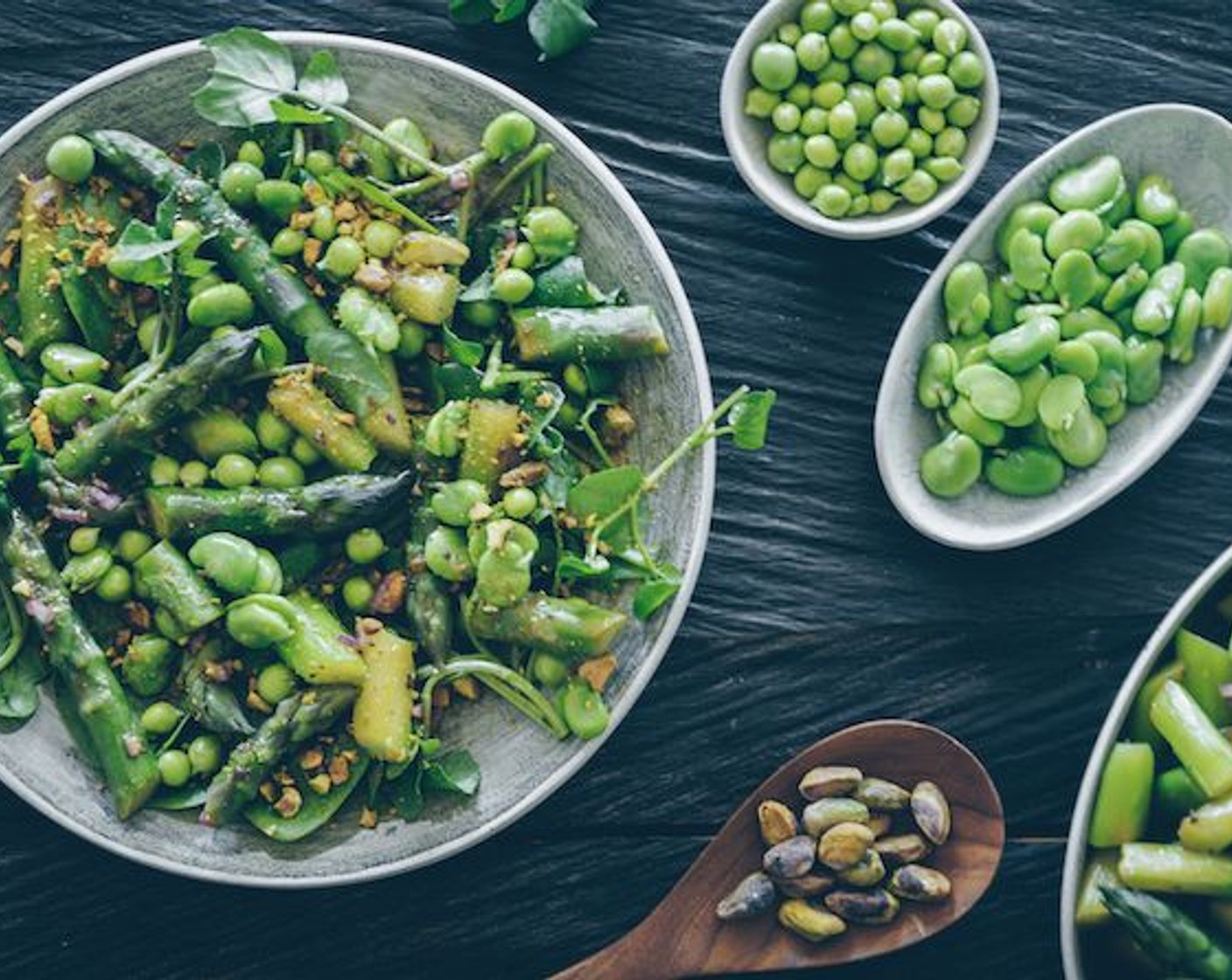 Grüne Favabohnen! Grüne Erbsen! Grüne Spargeln! Grüner Salat! Und dazu grüne Pistazien. Der Frühling ist endlich angekommen. Auch auf dem Teller. Ihr wollt den Frühling so richtig zelebrieren? Bitteschön: Einmal alles in Grün.