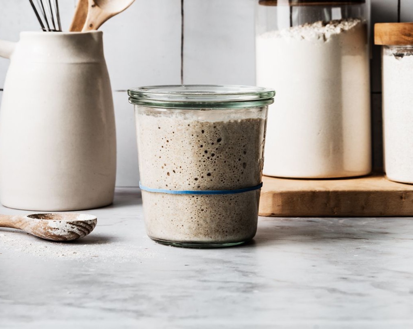 Mehl + Wasser + Zeit = Sauerteigstarter. Eine der lohnendsten kulinarischen Reisen, die man antreten kann. Die Herstellung eines Sauerteigstarters von Grund auf muss kein einschüchternder Prozess sein. Die wilde Hefe zu bändigen, um rustikale, luftige und köstliche Sauerteigbrote herzustellen, ist eine äusserst befriedigende Erfahrung. In diesem einfachen Sauerteigstarter-Grundrezept zeigen wir, dass lediglich 5 Minuten täglich über 7 Tage hinweg ausreichen, um einen robusten und lebendigen Sauerteigstarter zu erschaffen!