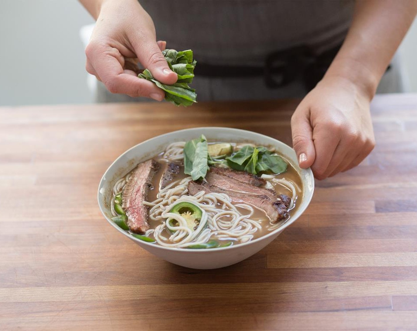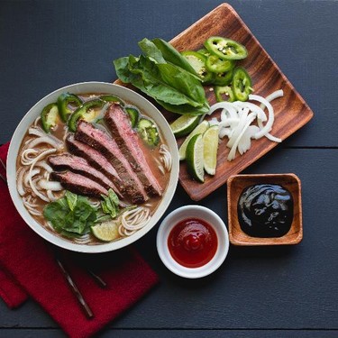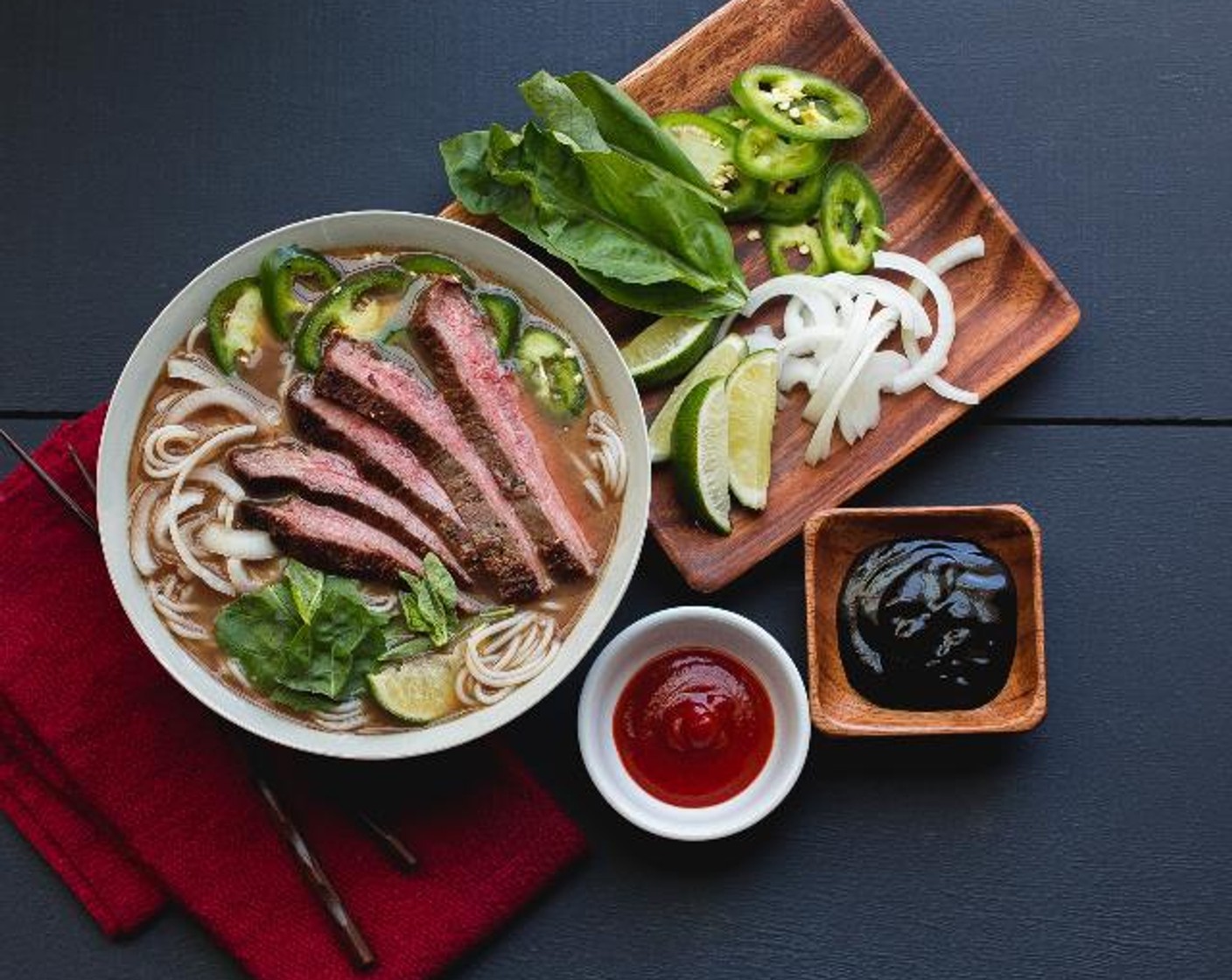 Wir lieben Pho – die beruhigende Suppe, die weltweit zum Synonym für die vietnamesische Küche geworden ist. Die intensiv würzige Brühe, saftiges Steak und perfekt gekochte Nudeln sind die Basis dieses köstlichen Gerichts. Gekrönt mit frischen, traditionellen Beilagen und serviert mit einem Duo köstlicher Saucen.
