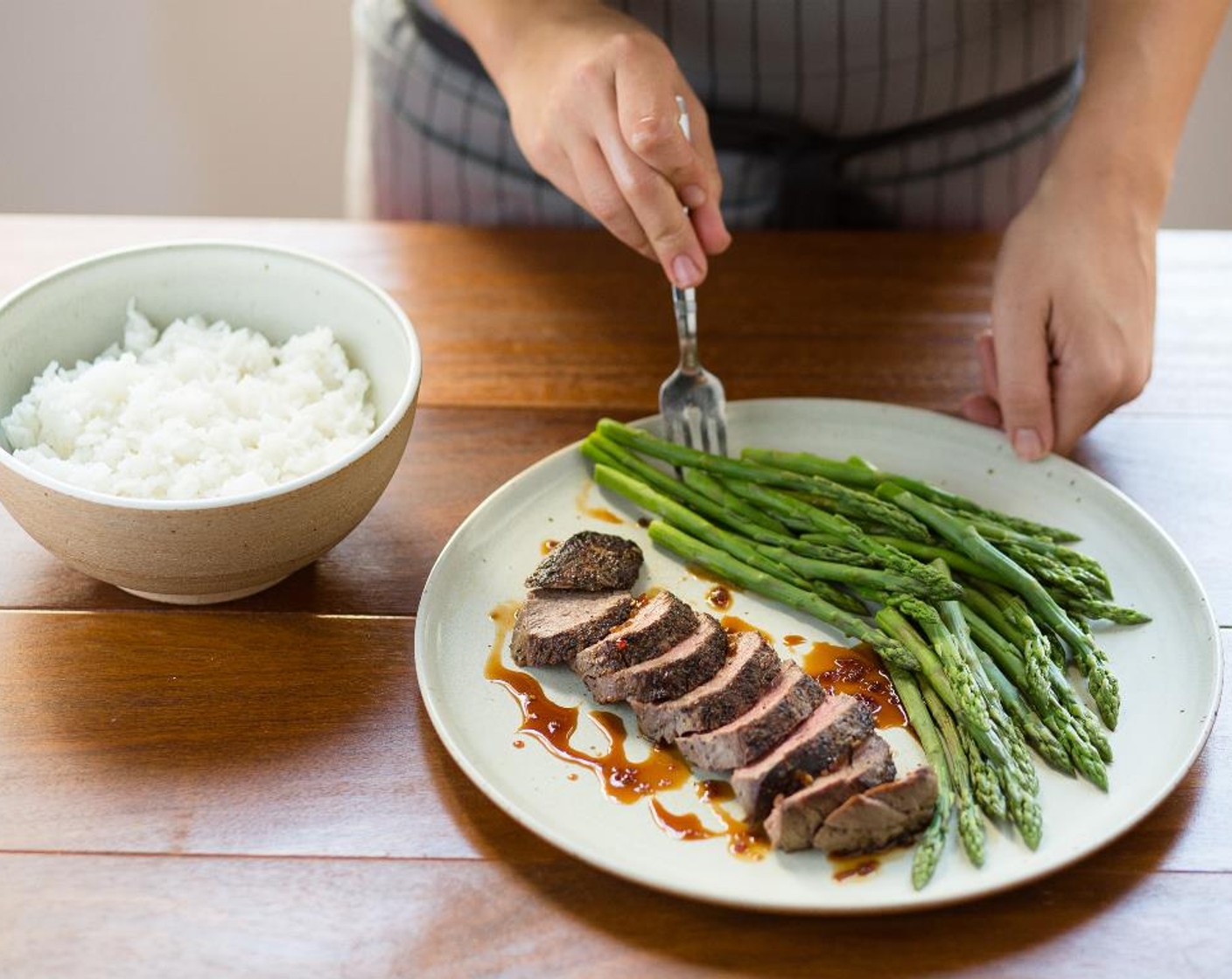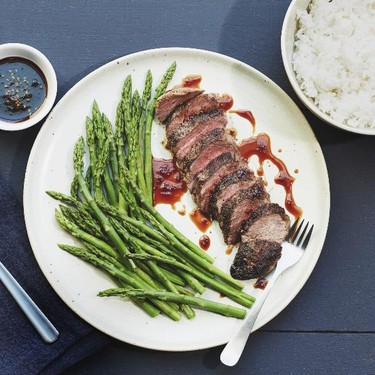 Ein Rezept von Soy Vay: "Dieses einfache, aber elegante Gericht mit zartem Rinderfilet ist schnell zubereitet und wird jeden sicher beeindrucken. Mit nur fünf Zutaten zaubert man im Handumdrehen ein Abend essen ohne im Anschluss daran aufräumen zu müsesn."