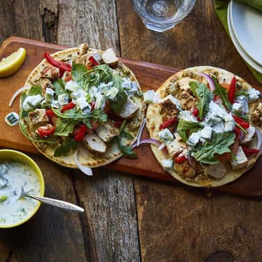 Etwa 4 Minuten grillen, bis die Zwiebeln dunkler werden und weich sind. Das eingewickelte Pita etwa 30 Sekunden lang auf den Grill legen, bis es gut aufgewärmt ist.