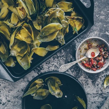 Einige meiner Lieblingsgemüse und Früchte haben nur eine kurze Saison. Spargeln, süsse Erbsen, Feigen, Artischocken. Besonders mag ich die grossen, fleischigen Artischocken zum abzupfen. Bei meinem letzten Besuch in Tel Aviv hab ich zum ersten Mal grillierte Artischocken gegessen. Die zusätzlichen Röstaromen machen die Artischocke zum besonderen Genusserlebnis.