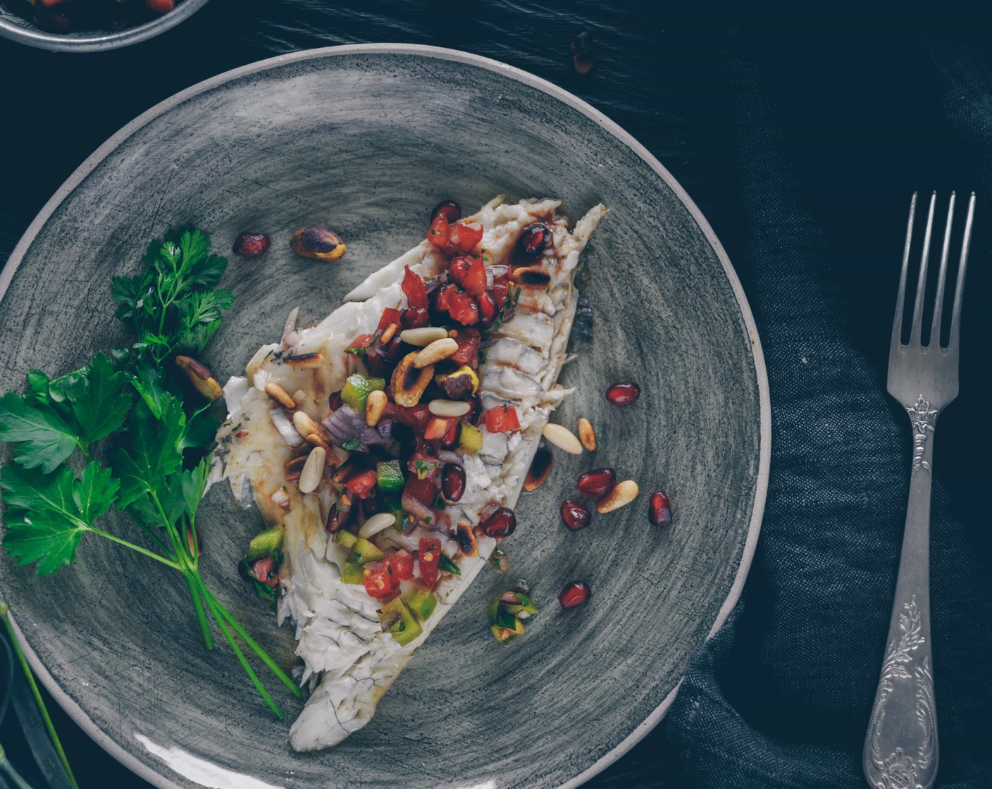 Inspiration für die Grillitarier unter euch: einen ganzen Fisch vom Grill. Dorade hat festes Fleisch und eignet sich darum besonders gut zum Grillieren. Für das ultimative Geschmackserlebnis sorgt das Dressing mit Granatapfelmelasse. Salzig, sauer, süss, fruchtig, nussig, würzig, frisch. Ich komme aus dem Schwärmen gar nicht mehr heraus. Probier’s einfach aus!